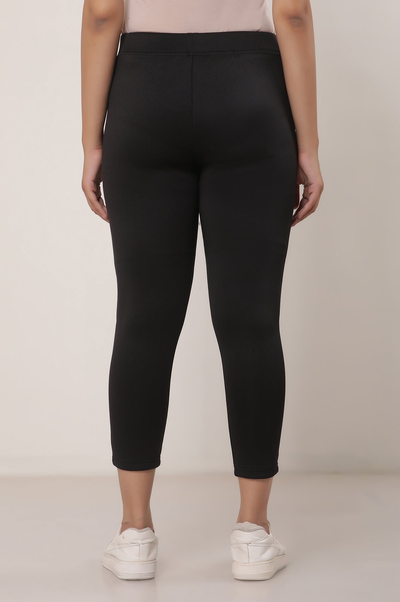 Black Solid Skinny Fit Calf Length Mid Rise Tights
