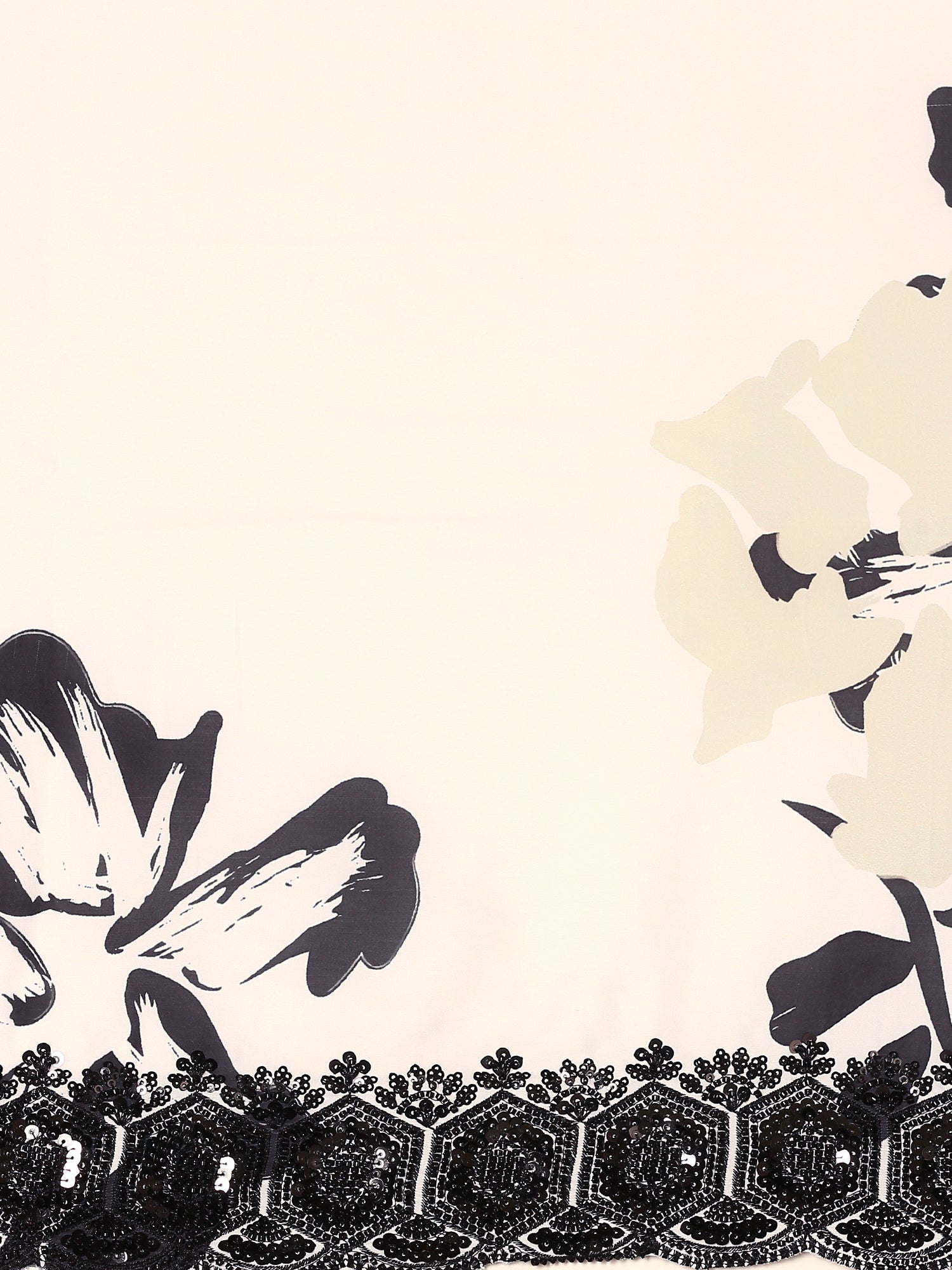 Black & white satin printed saree with hand embroidery & ready made blouse