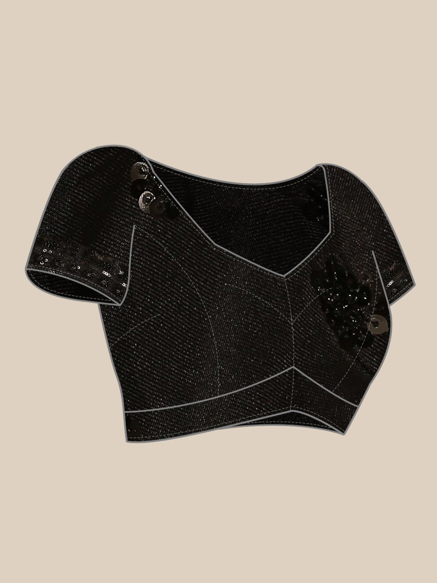 The saree is accompanied by a stylish, ready-made blouse designed to complete your look.