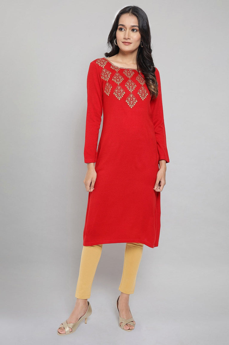 Shine on this winter with this chic acrylic kurta by Aurelia. It is crafted in premium fabric and adorned with zari embroidery and sequin work.
