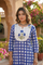 Blue Cotton Floral Printed And Checked Two Piece Set