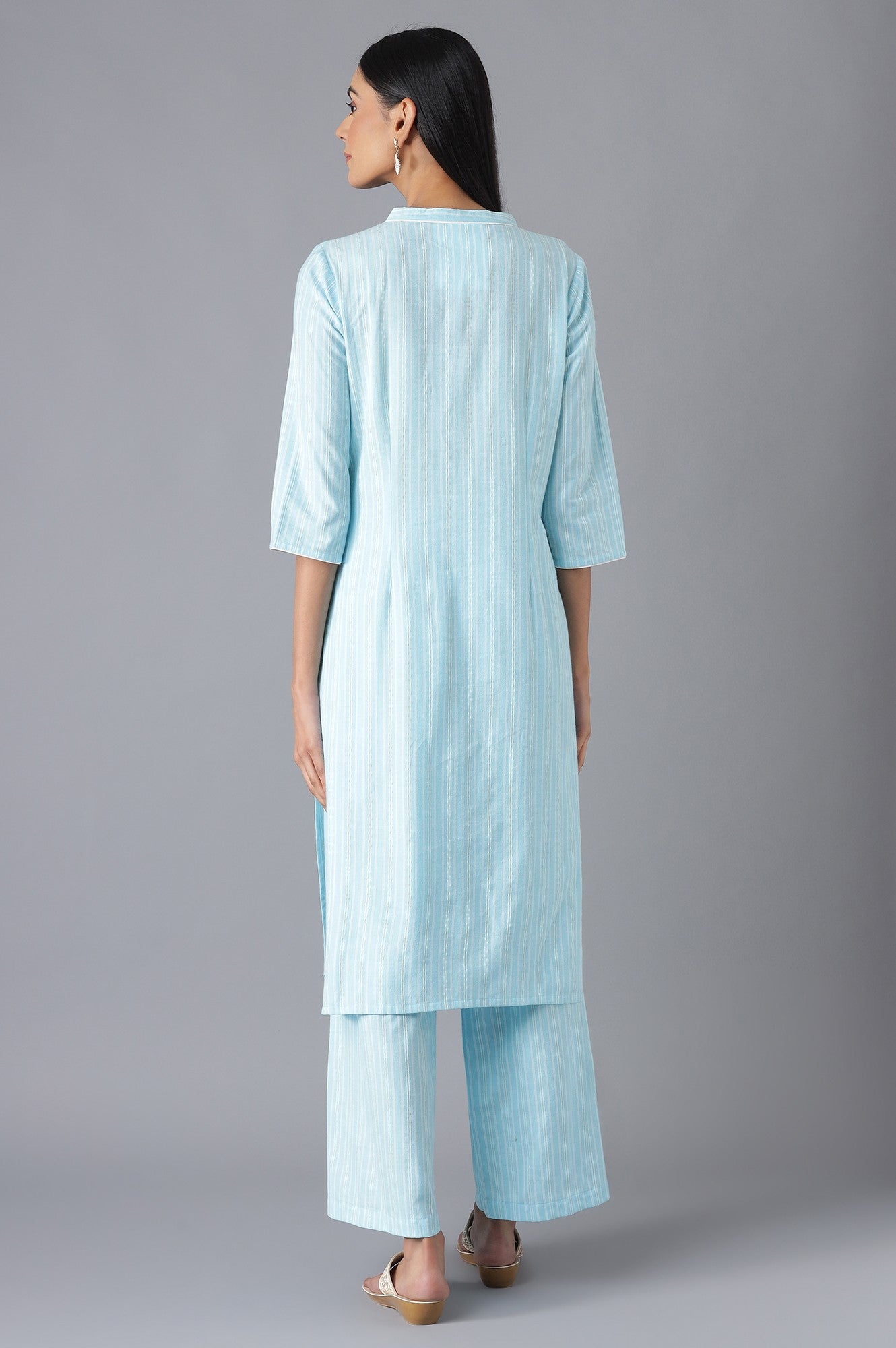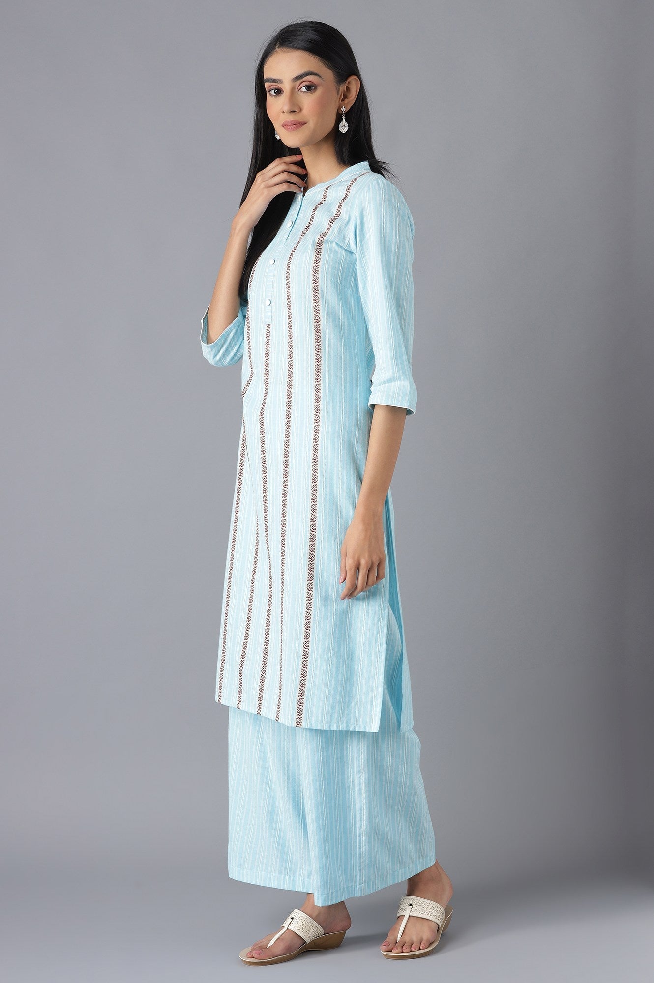 Be it family get together or a light festivity, this ethnic kurta and palazzo set is a must-have. Style yourself in this pretty feminine set, which includes a straight fit kurta and paired with printed straight palazzo.