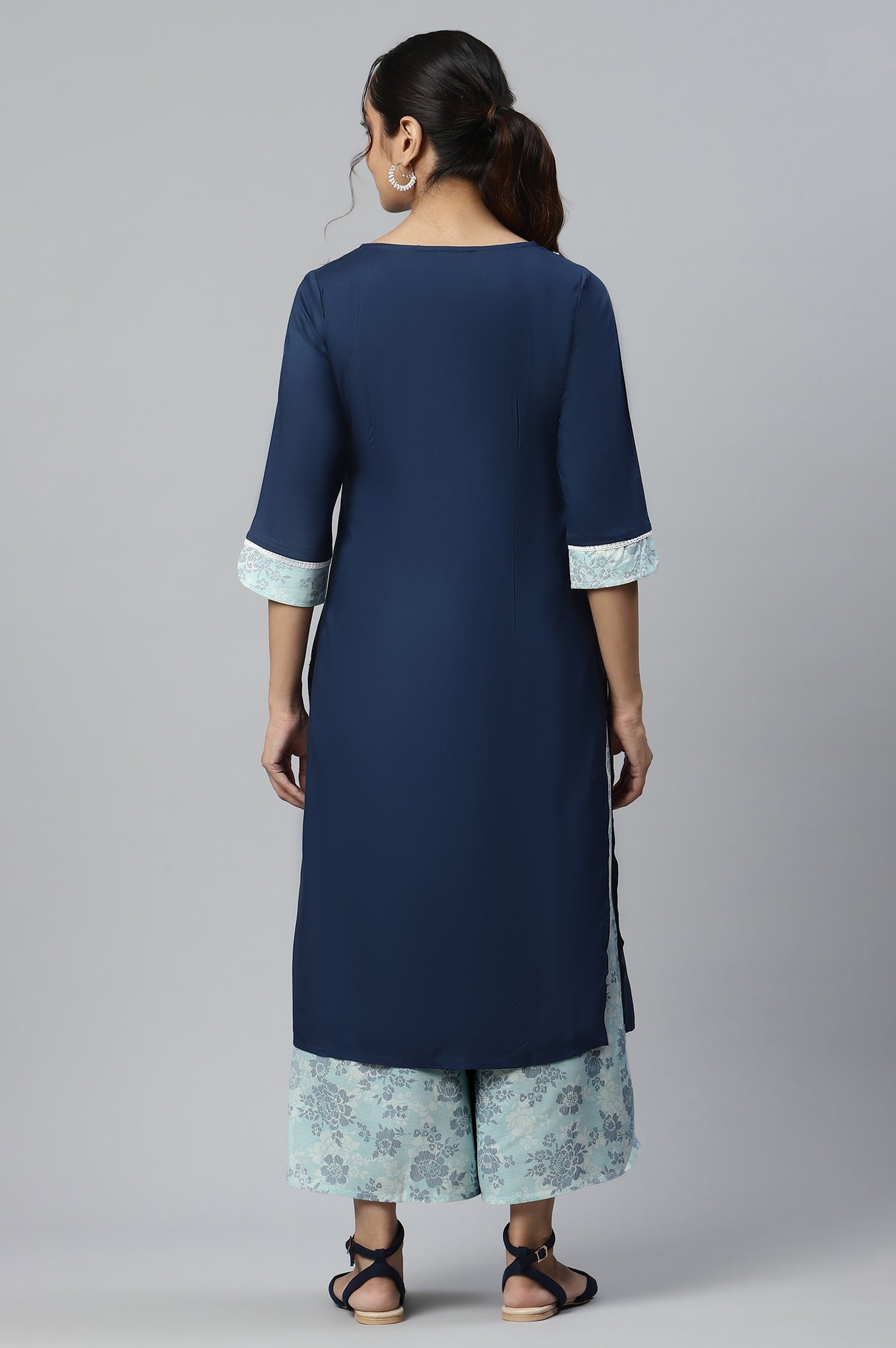 Blue Ethnic Rayon kurta and Flared Culottes Set