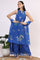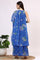 Blue Floral Printed Halter Neck Chiffon Kurta with Flared Pants and Dupatta Set