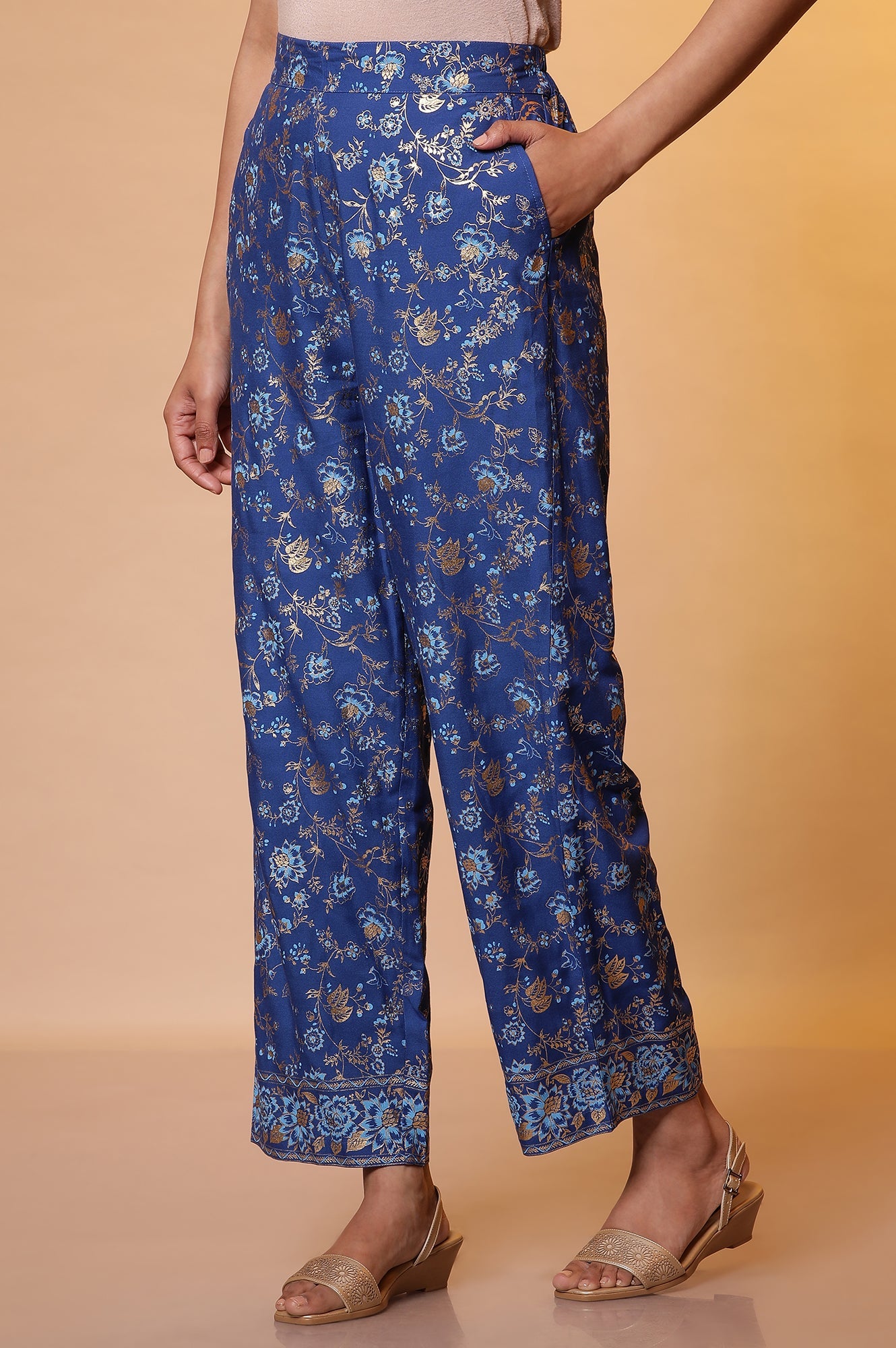 Immerse yourself in the allure of a beautifully printed narrow palazzo in an eye-catching pattern. This palazzo embodies both style and versatility with its front flat and elasticised back along with two side pockets creating a dynamic and chic look.