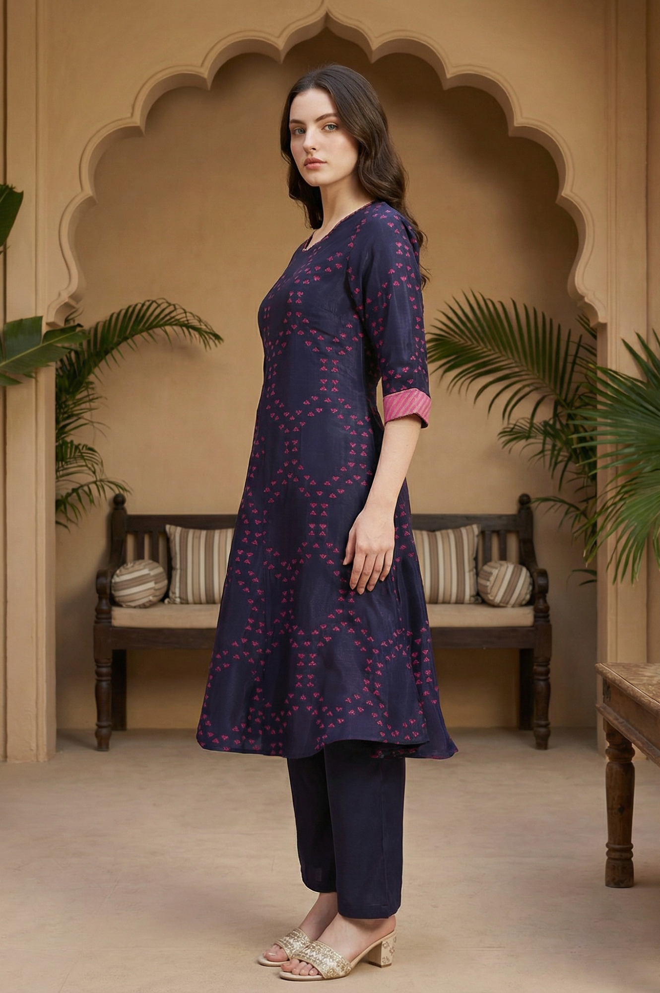 Brighten up your wardrobe with this blue straight shantung kurta. Crafted from luxurious shantung fabric, it features a sleek straight silhouette that offers a polished and elegant look. The vibrant blue hue is enhanced by delicate floral prints, adding a refreshing touch of charm. Perfect for festive celebrations or casual outings, this kurta seamlessly blends comfort with timeless sophistication, making it a versatile addition to your collection.