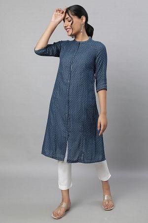 Blue Printed Cotton kurta & Trousers Set