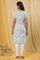 Light Blue Floral Printed Kurta In Short Sleeves And Keyhole Neckline. It Is Paired With White Solid Tights.