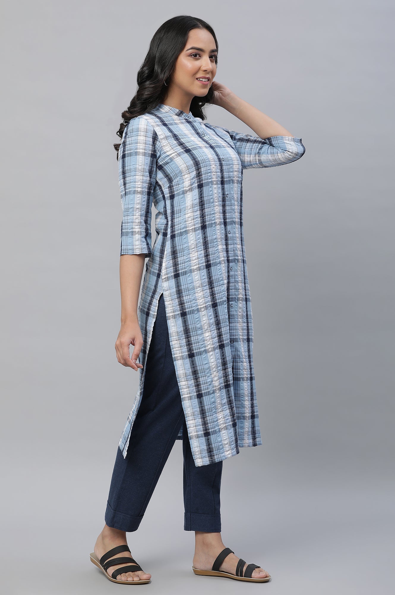 Discover our seer sucker kurta set range, where styles meets comfort. The set has mandarin collar straight kurta in check print and paired with trouser pants.
