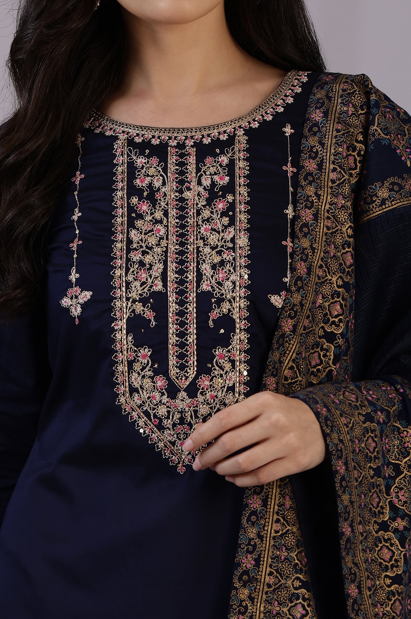 Enhance your ensemble with this stunning blue dupatta from W. Made from 100% man-made fiber, this casual accessory adds a touch of elegance to any outfit. The polyester material ensures durability and easy maintenance, making it perfect for everyday wear. Crafted using a woven construction technique, this dupatta drapes beautifully and complements a variety of looks. The fusion ethnicity of this piece allows for versatile styling options, whether you're dressing up for a casual outing or a festive gathering. The Kota fabric adds a lightweight and breathable quality, perfect for layering. This dupatta is designed to effortlessly elevate your attire, adding a pop of color and sophistication to your ensemble. Embrace the fusion of tradition and modernity with this chic blue dupatta from W's latest collection.