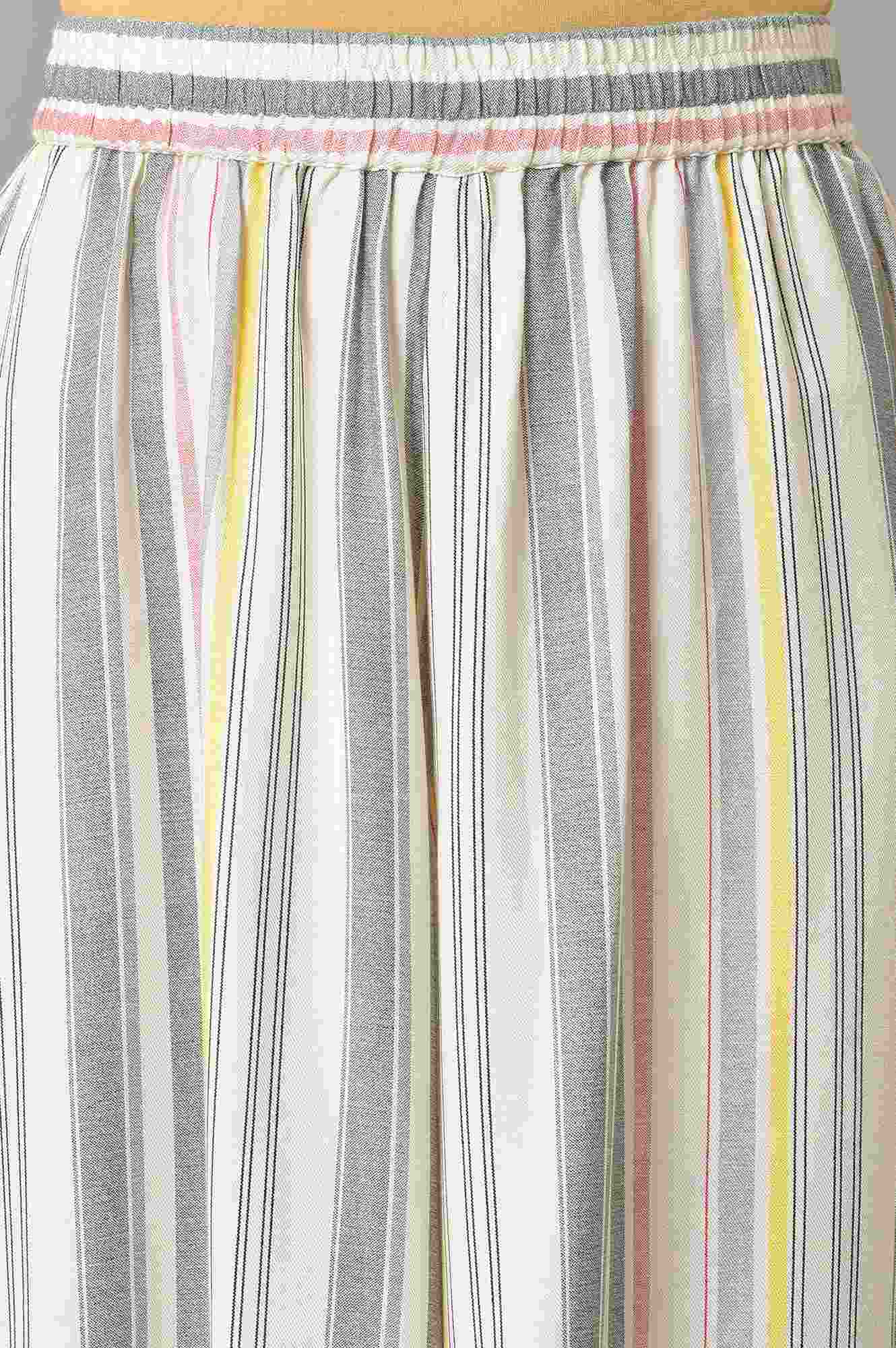 Simple And Timeless, This Rayon Twill Kurta With Flared Culotte Is A Wardrobe Essential. It Comes With A Mandarin Collar Accentuated With Printed Piping Detail And Buttons That Match The Bottom For A Complete Look!