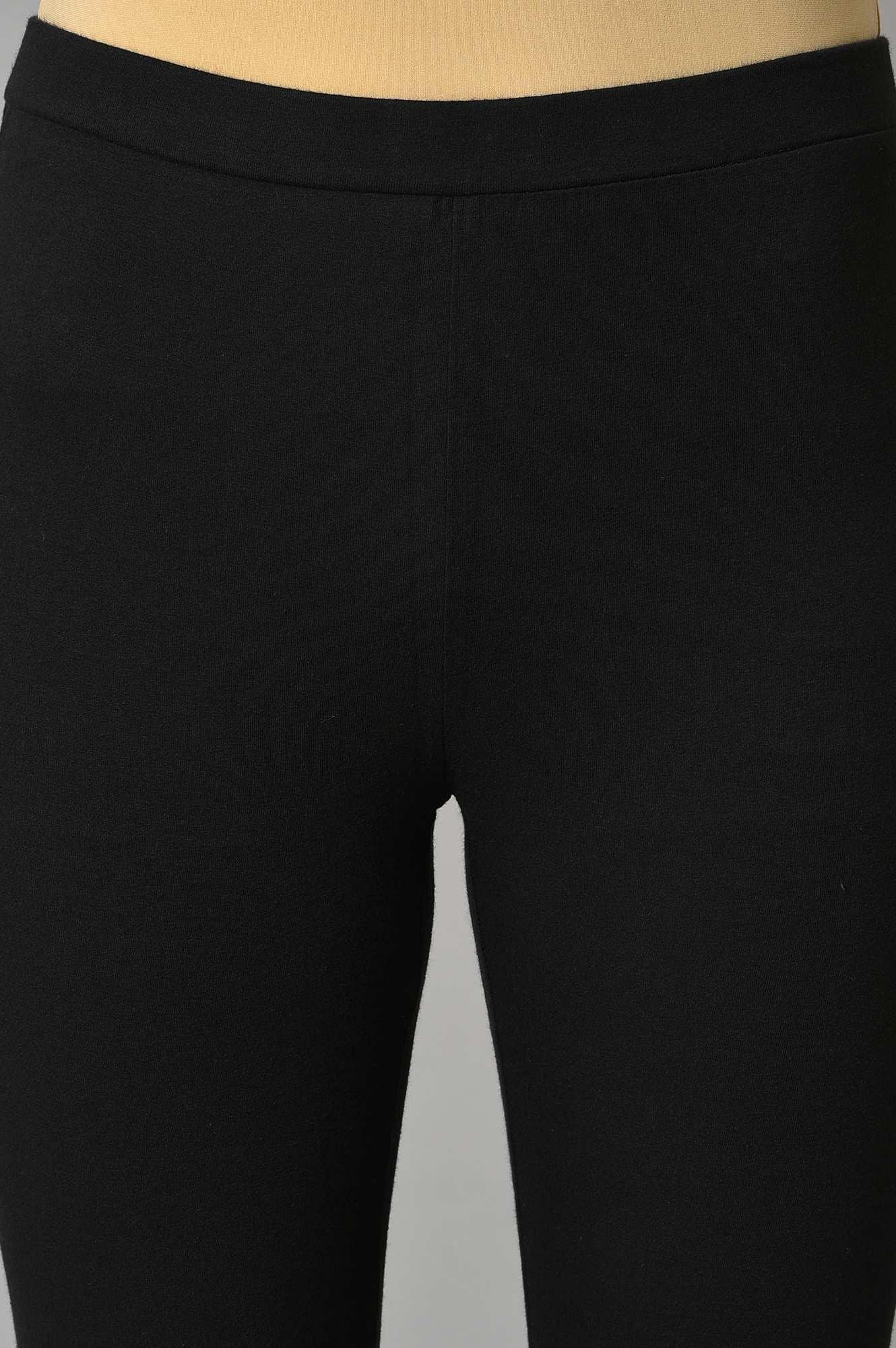For A Stylish Weekend Getaway Get This Blue Stripe Printed A-Line kurta, Flattering Thread Embroidery On Yoke. It Is Coordinated With Black Solid Tights.