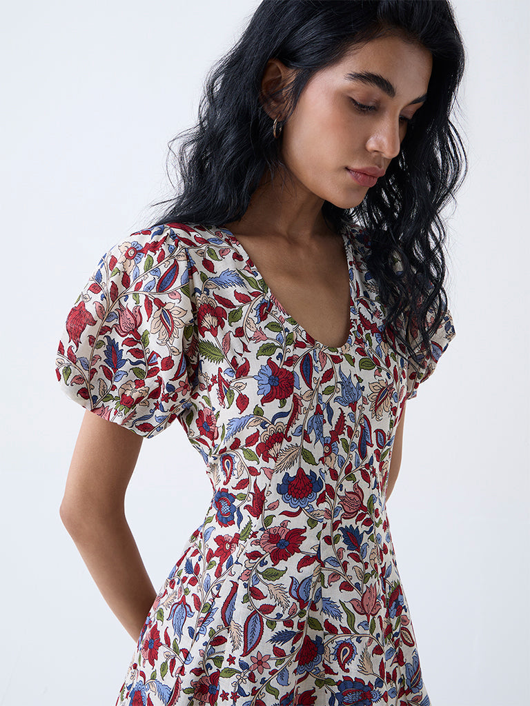 Bombay Paisley Multicolour Floral Cotton A-Line Dress