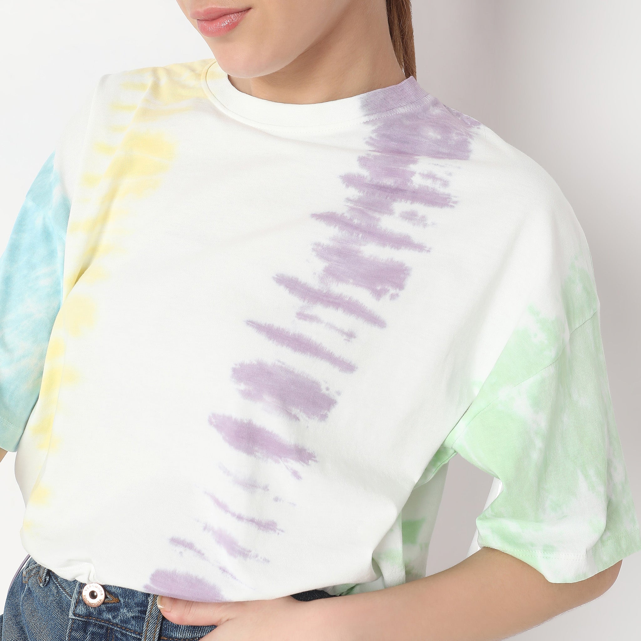 This tie - dye pattern t-shirt has a round neck and short sleeve. Made from cotton, it is soft and comfortable to wear.