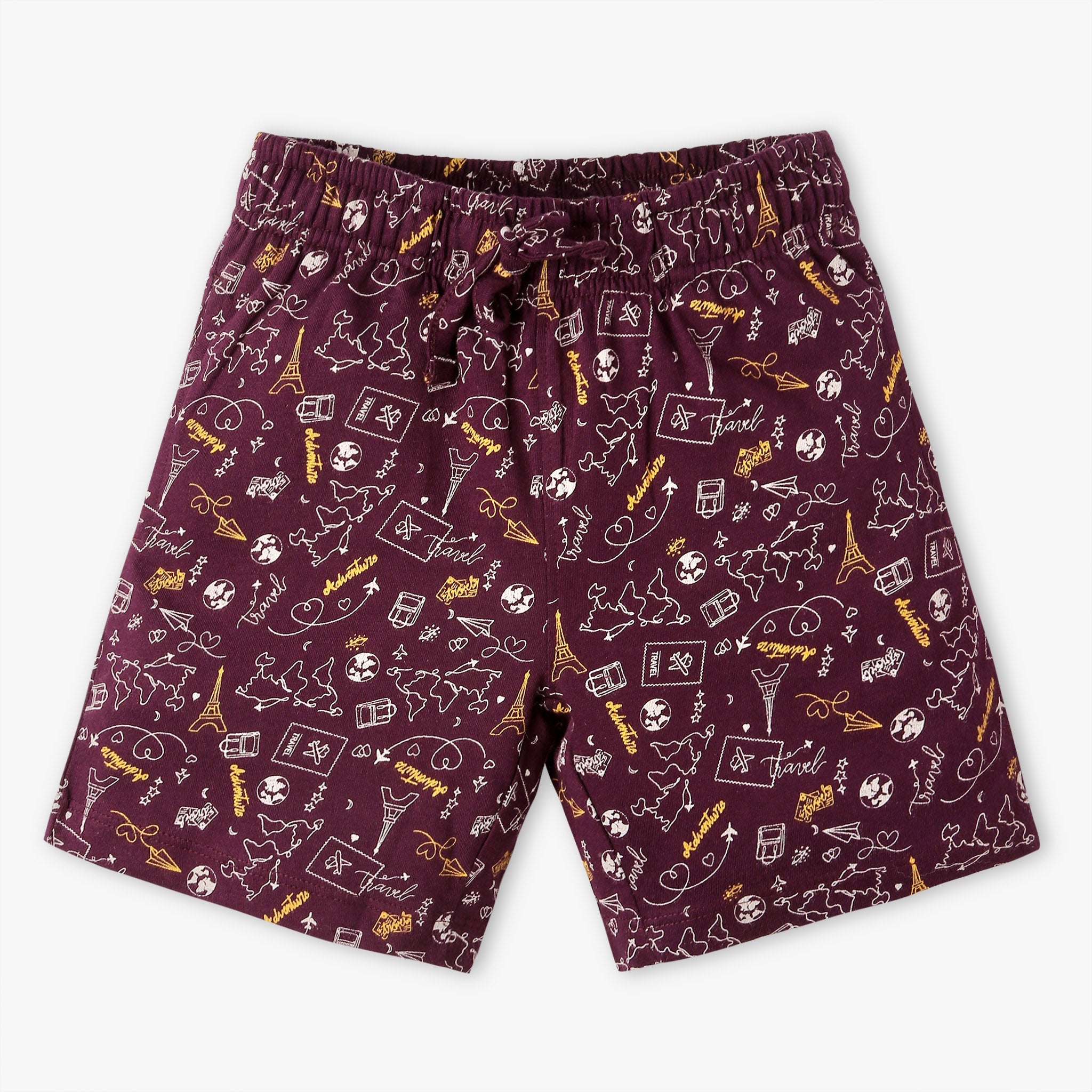 Boys All Over Print Full Length Crew Neck Half Sleeve T-Shirt With Short Sleepwear Set