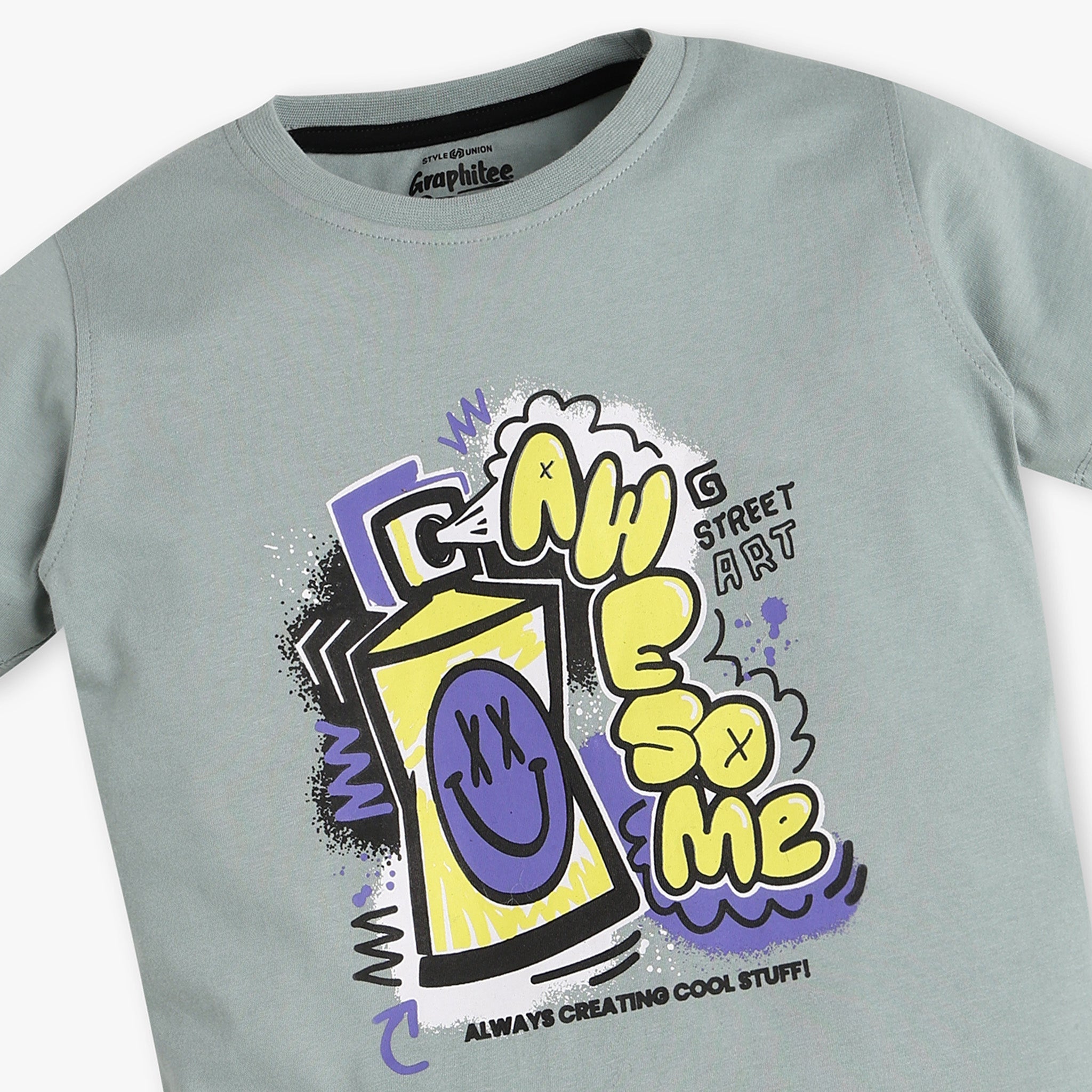 Experience the perfect blend of comfort and style with our Boys Crew Neck Graphitee. Crafted from 100% cotton, this t-shirt offers a soft, breathable feel that keeps your child comfortable all day long. The graphic pattern adds a fun and trendy touch, making it a versatile choice for any casual occasion.