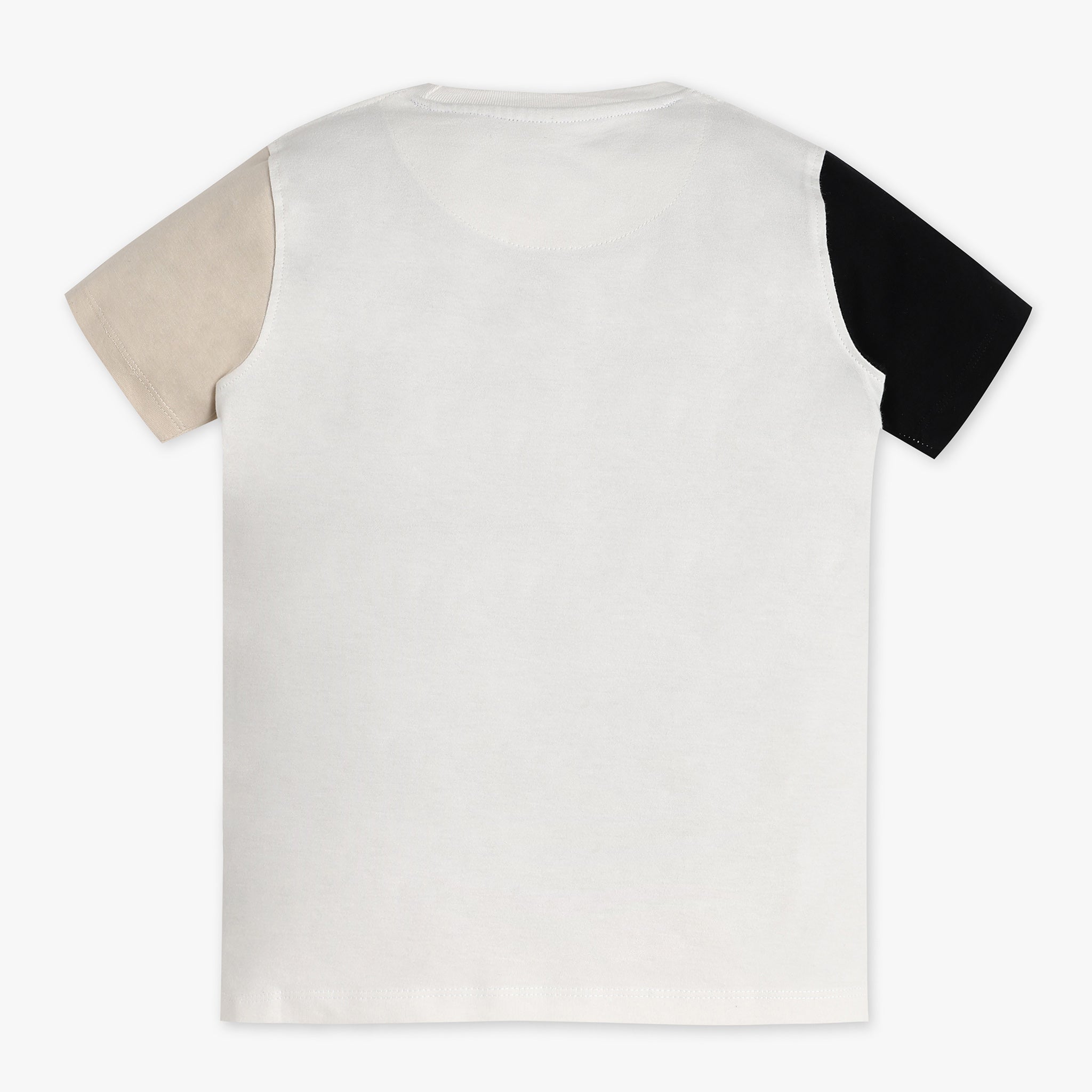 Experience the perfect blend of comfort and style with our Boys Cut & Sew T-Shirt. Crafted from 100% cotton, this t-shirt offers a soft touch against the skin, making it ideal for all-day wear. The knit weave ensures flexibility and breathability, keeping your little one comfortable during playtime or casual outings.