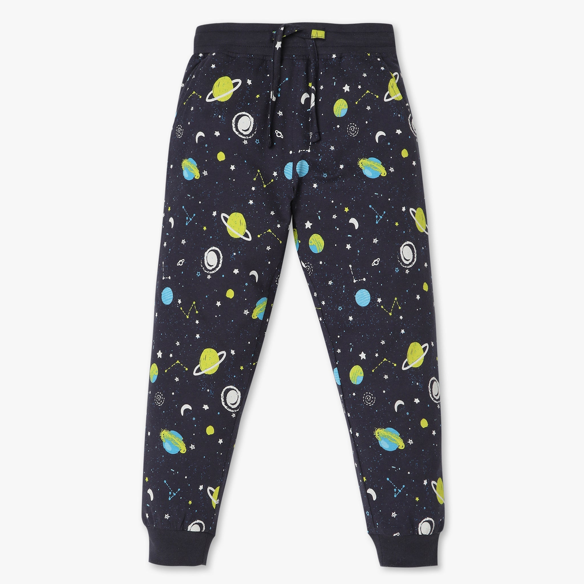 These printed pattern t-shirt with trackpant sleepwear set has crew neck and full sleeve. Made from cotton, your kid's feel comfortable wearing the product.