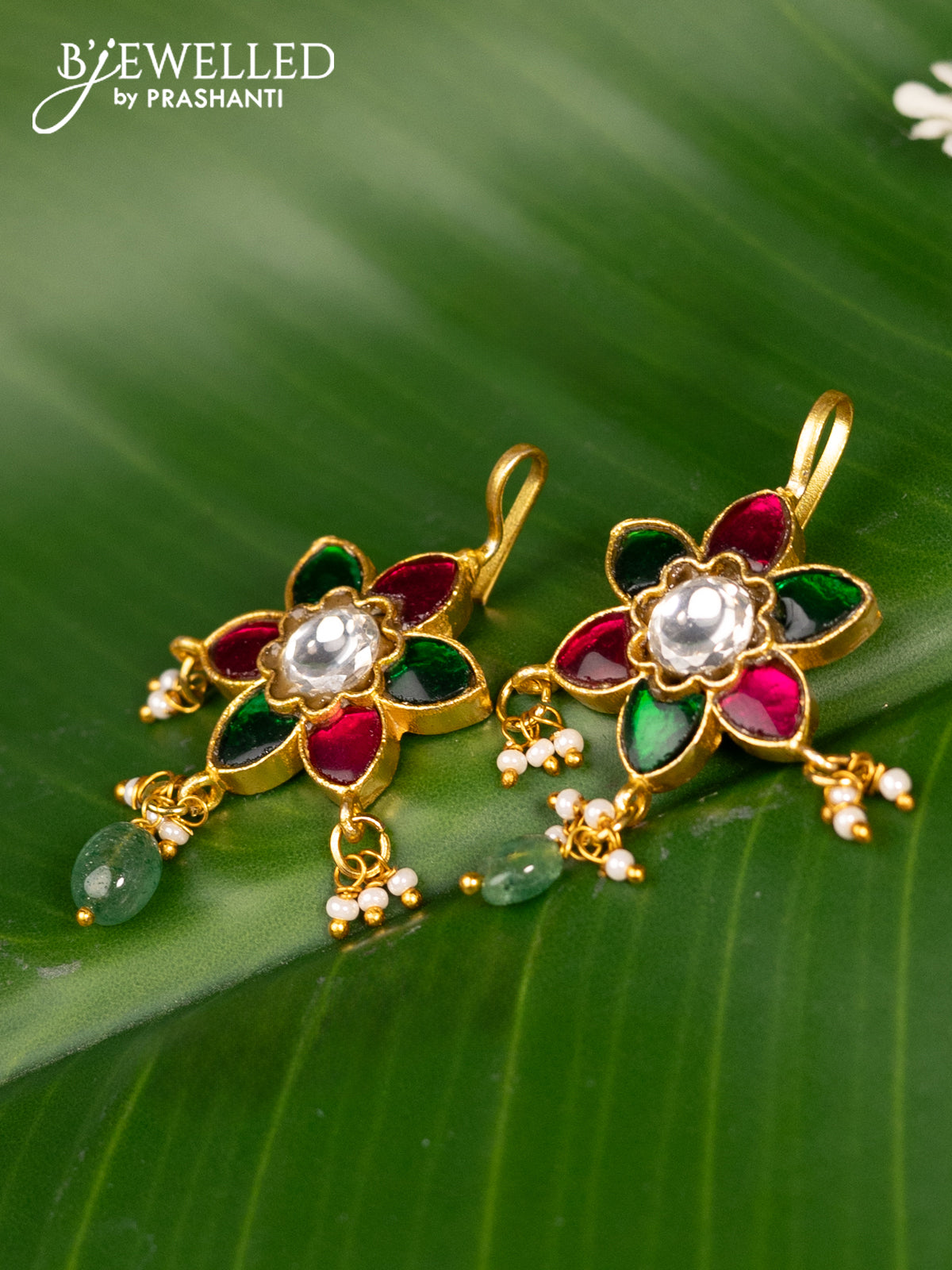 Bugadi earrings floral design with jadau kundan stones and pearl & beads hanging