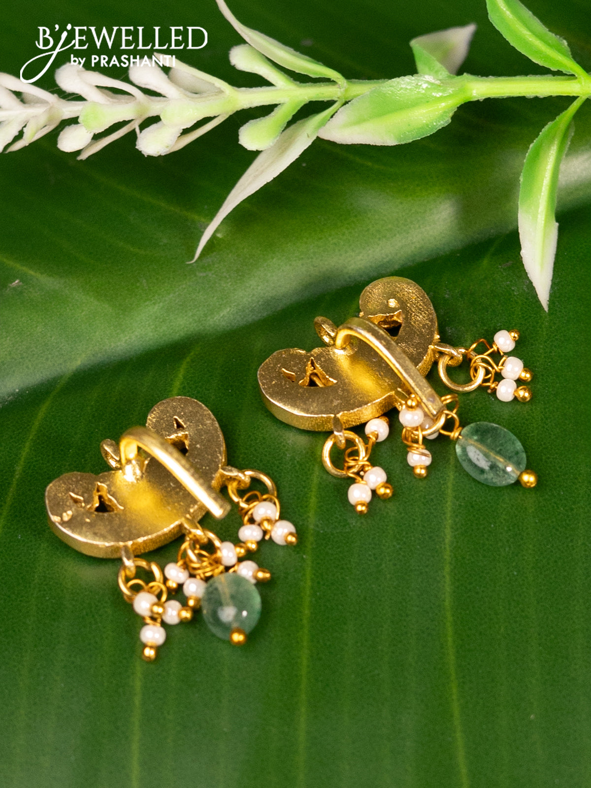 Bugadi earrings lotus design with jadau kundan stones and pearl & beads hanging