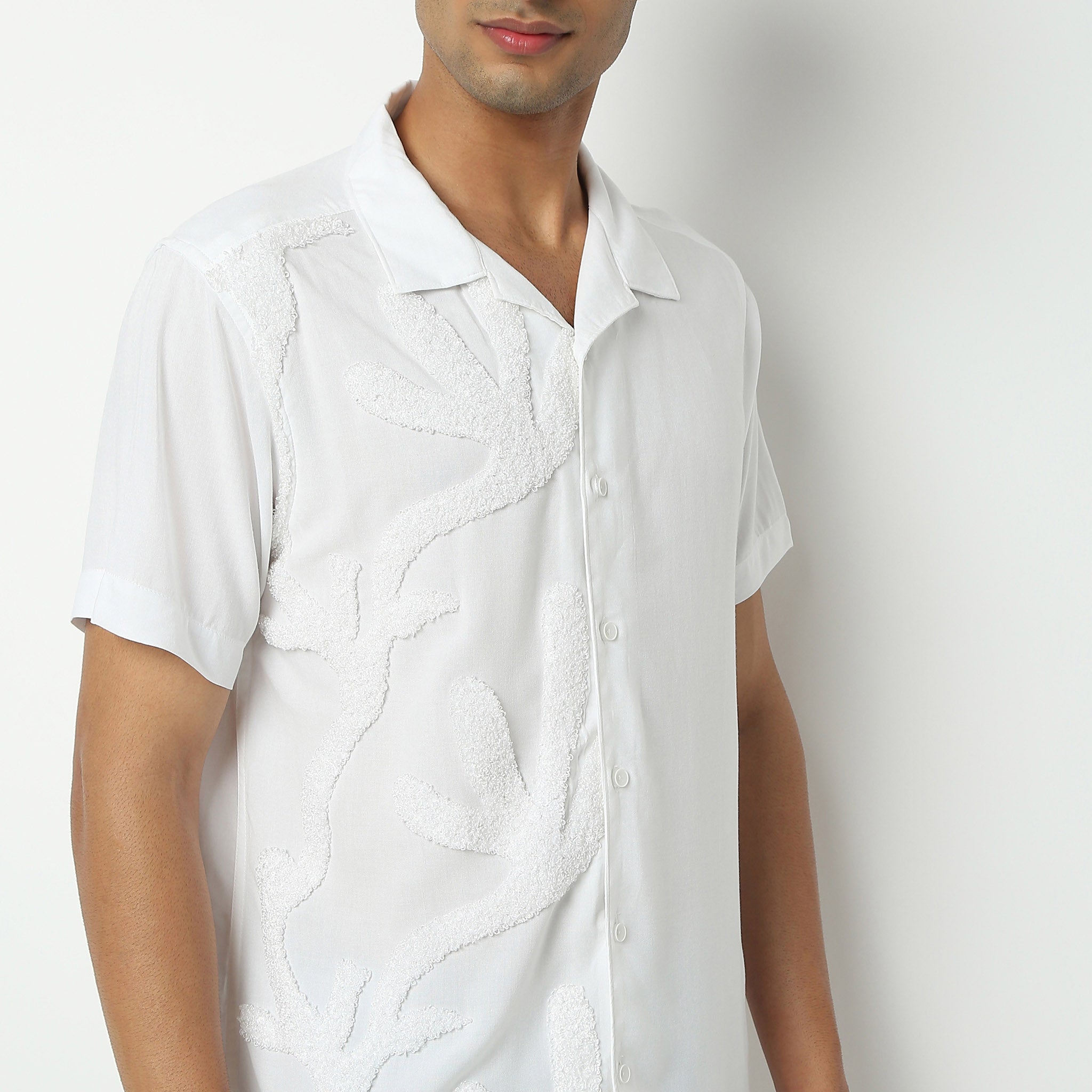 Experience the perfect blend of comfort and style with our Regular Fit Solid Camp Collar Shirt. Crafted from 100% cotton, this shirt offers a soft touch against your skin, ensuring all-day comfort. Its solid pattern and camp collar bring a touch of sophistication to your wardrobe, making it a versatile piece for any occasion.