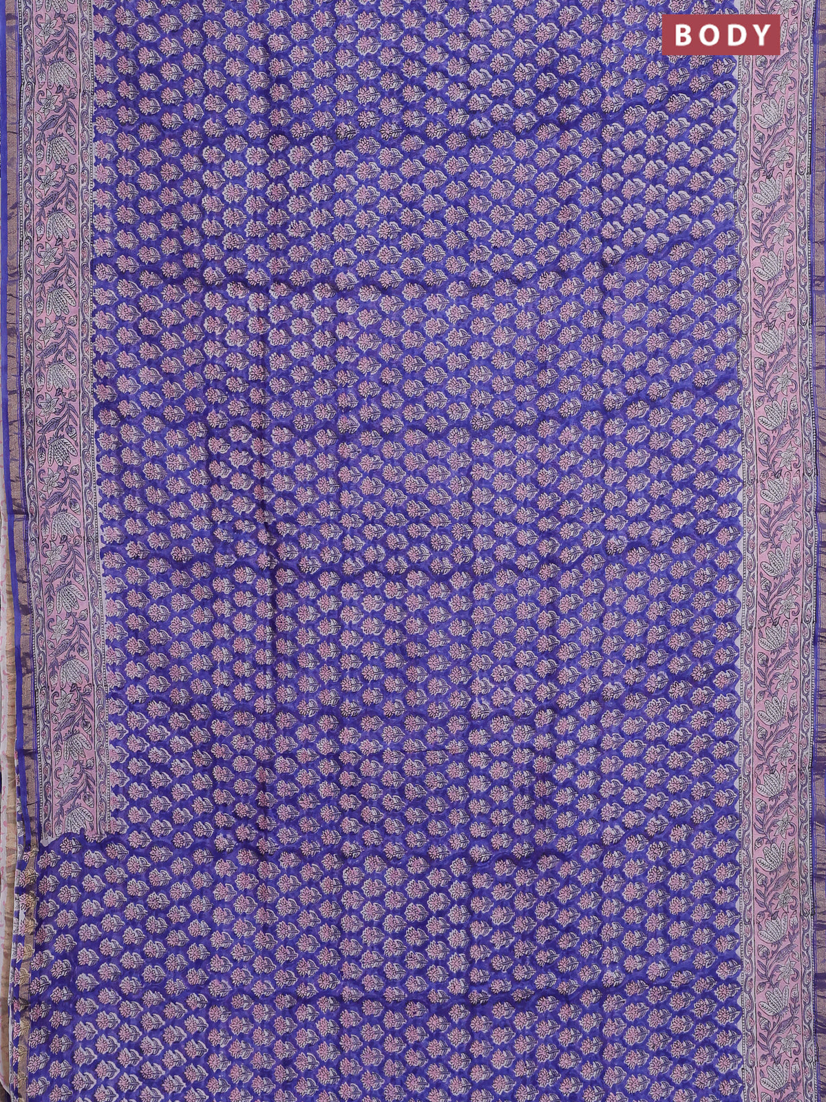 Chanderi bagru saree blue with floral butta prints and small zari woven border
