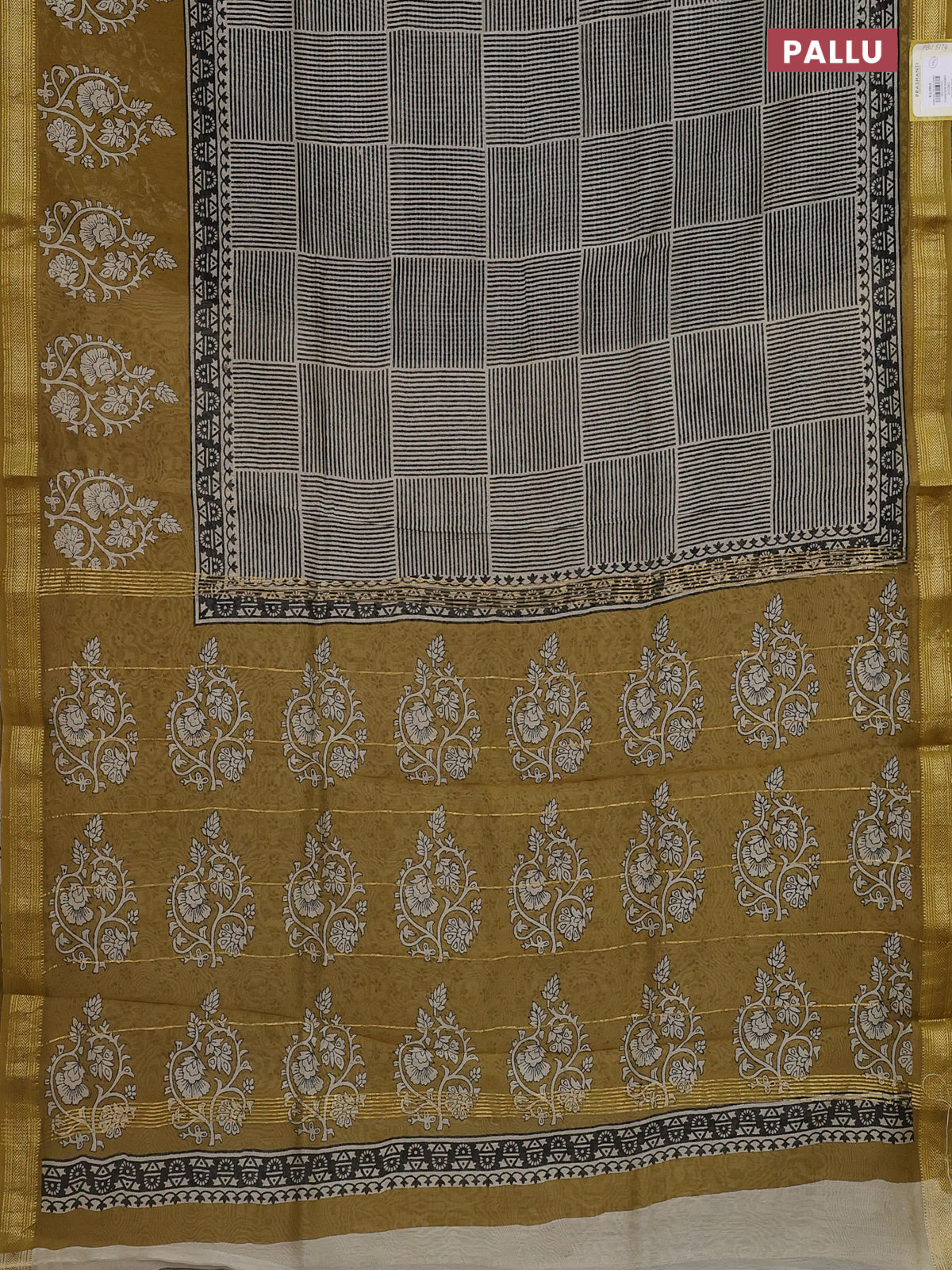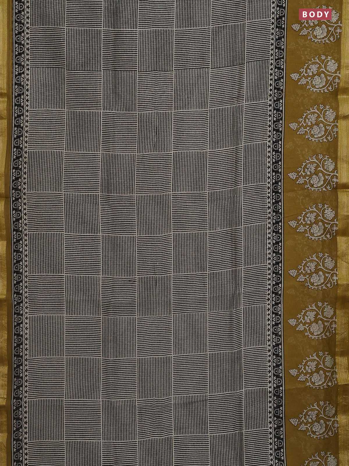 Chanderi bagru saree cream black and mehendi green with allover stripe pattern and maheswari border