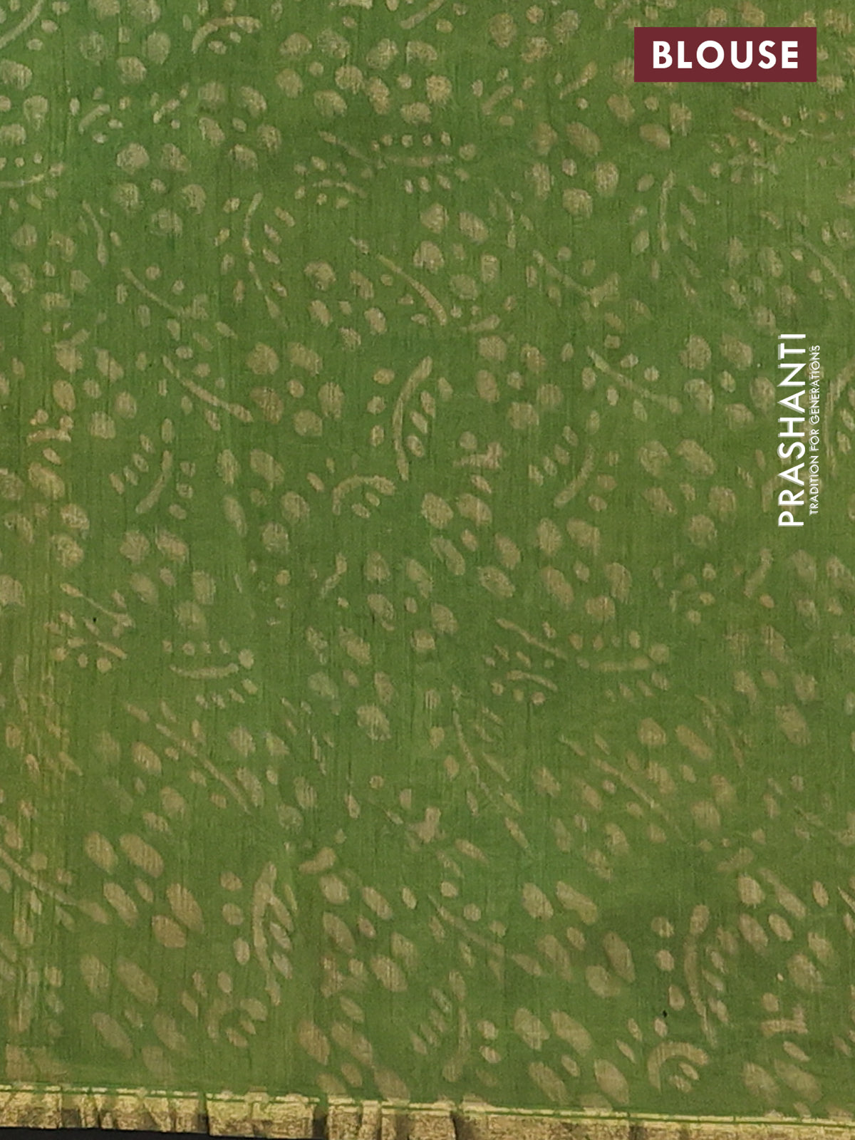 Chanderi bagru saree elaichi green and black with allover ajrakh butta prints and small zari woven border