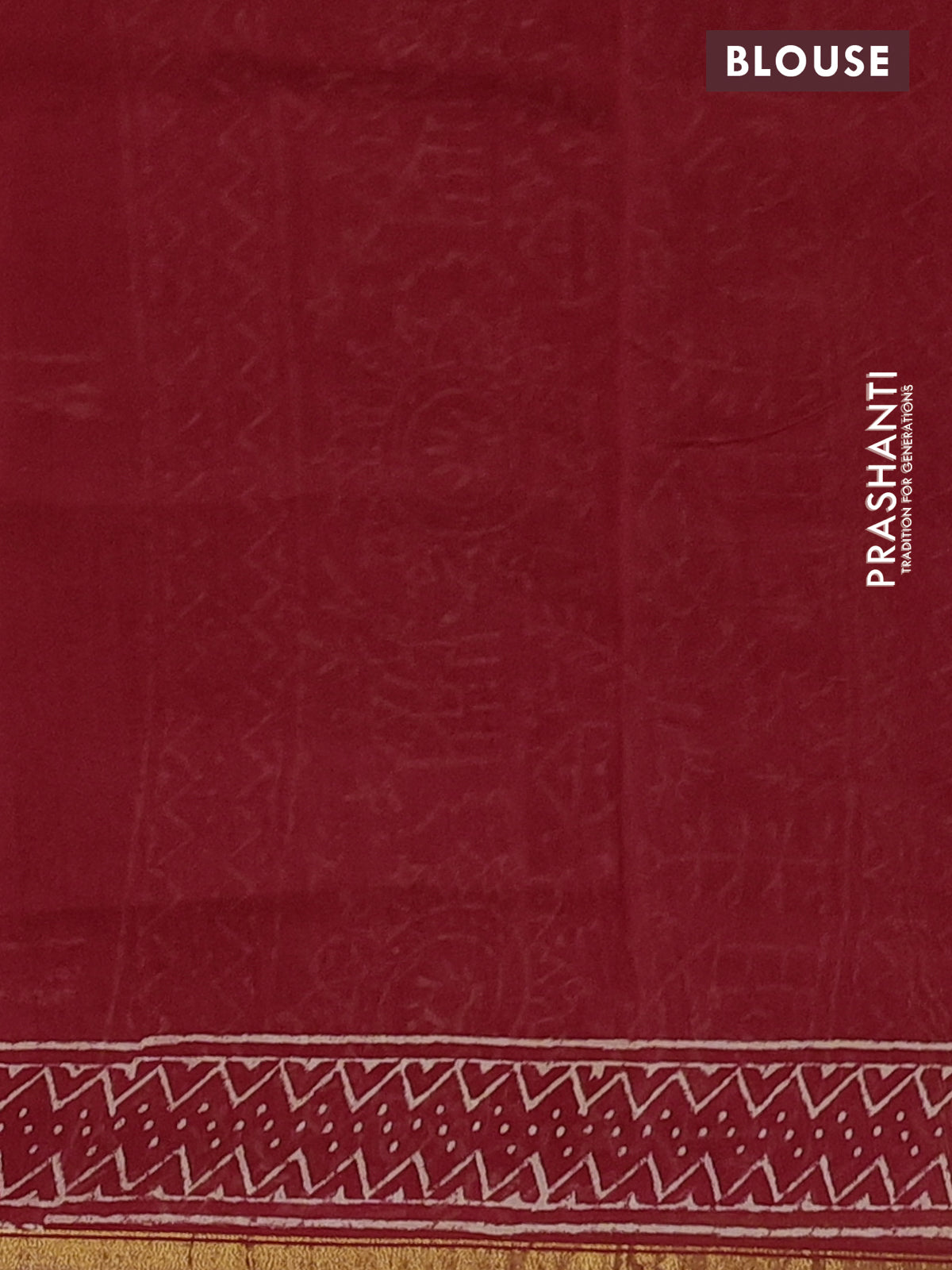 Chanderi bagru saree maroon with butta prints and small zari woven border