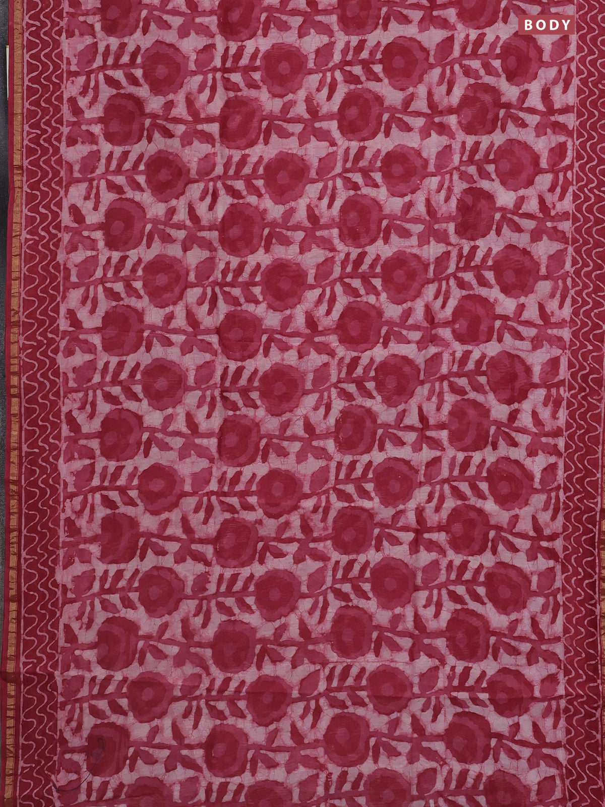 Chanderi bagru saree off white and maroon shade with allover batik prints and small zari woven border