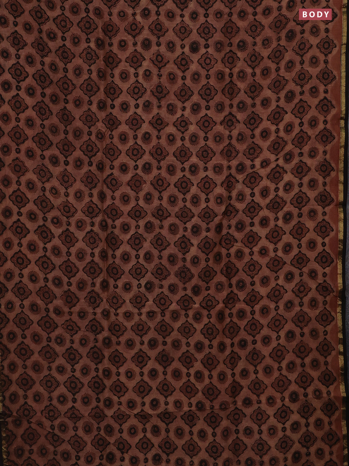 Chanderi bagru saree pastel brown and black with allover ajrakh prints and small zari woven border