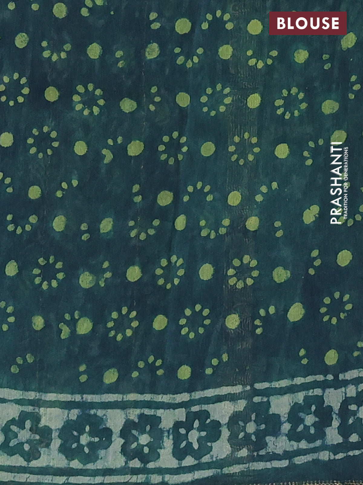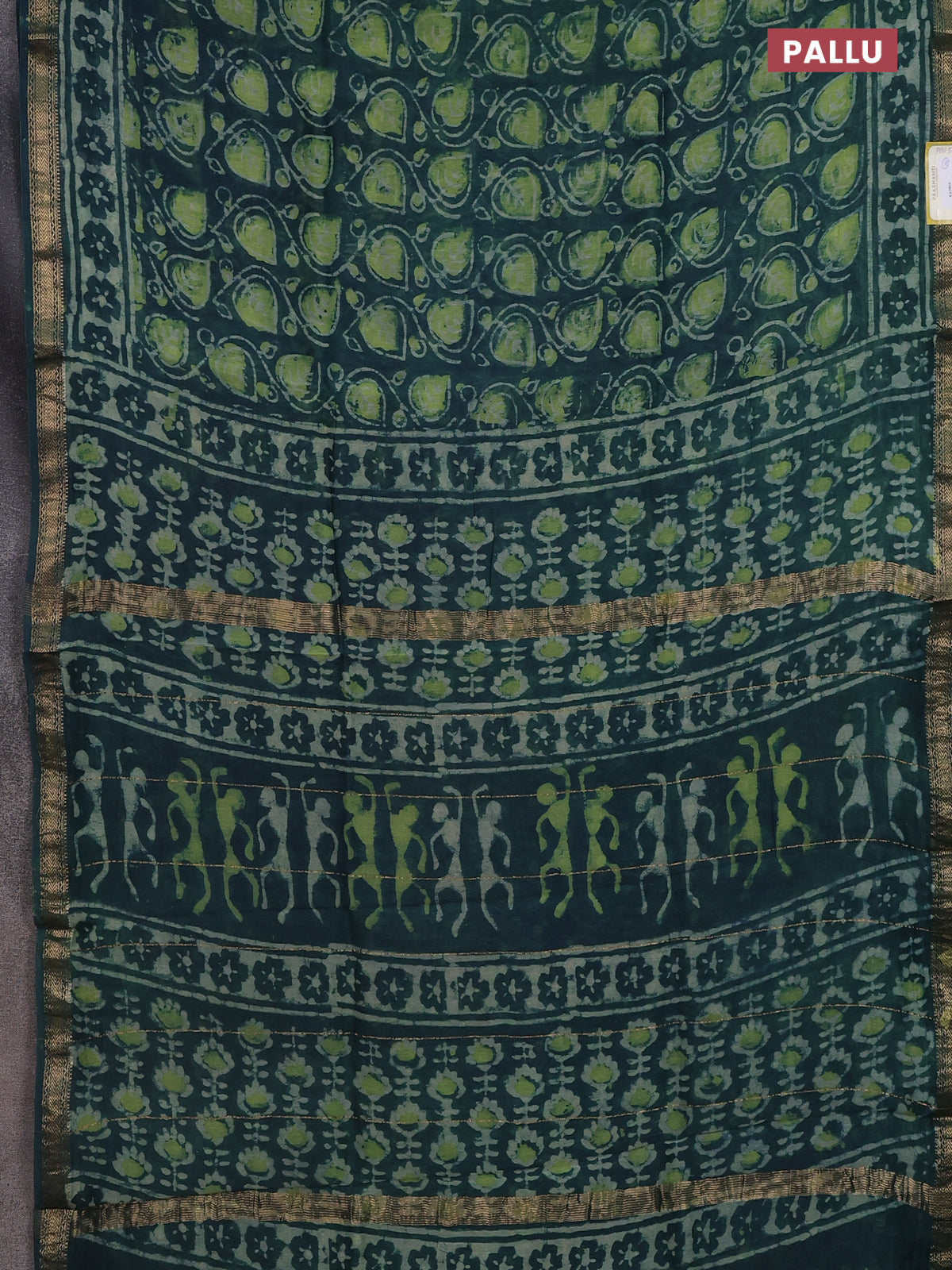 Chanderi bagru saree peacock green with allover prints and mageshwari border