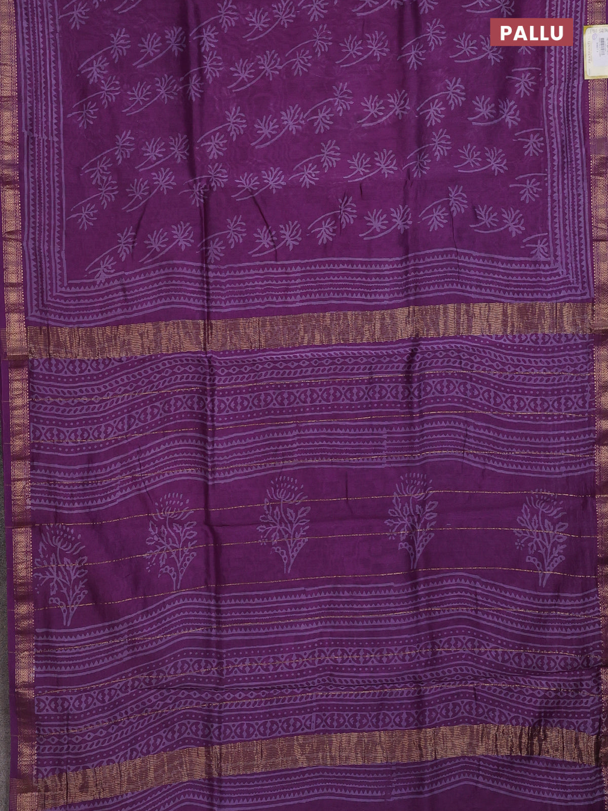 Chanderi bagru saree purple with allover prints and mageshwari border