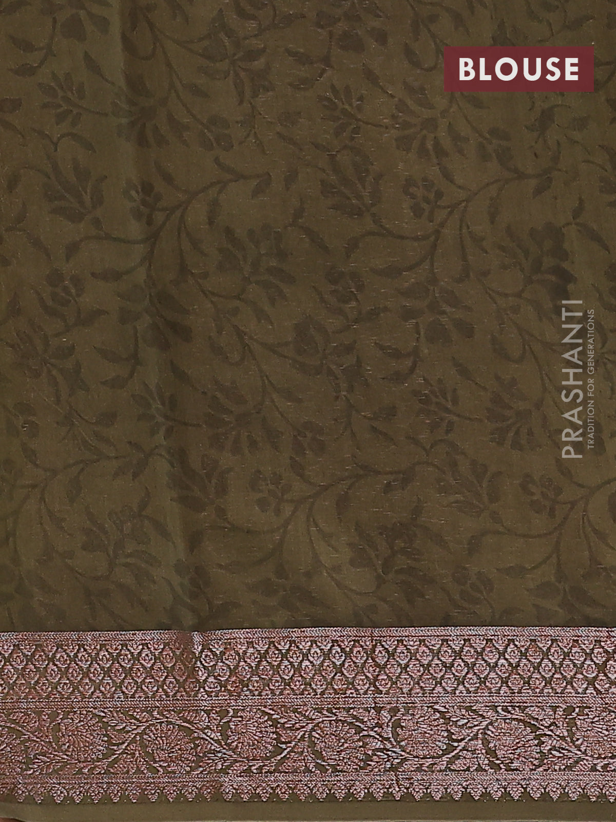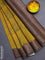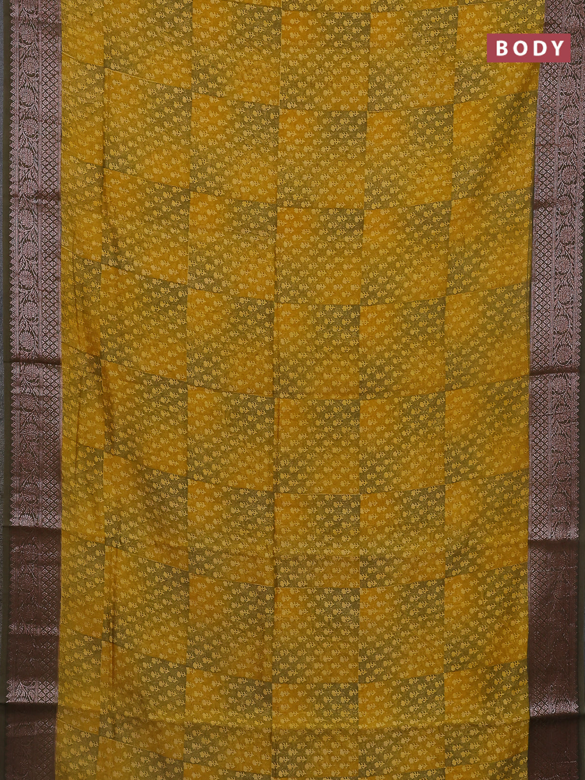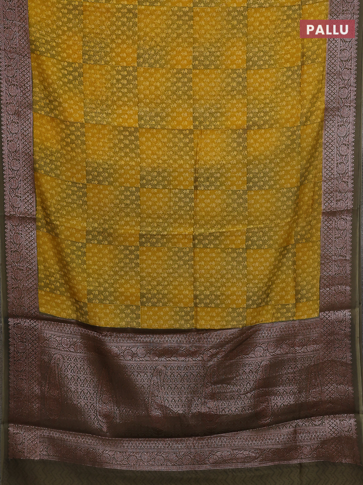 Chanderi silk cotton saree dark mustard and grey shade with allover prints and banarasi style border