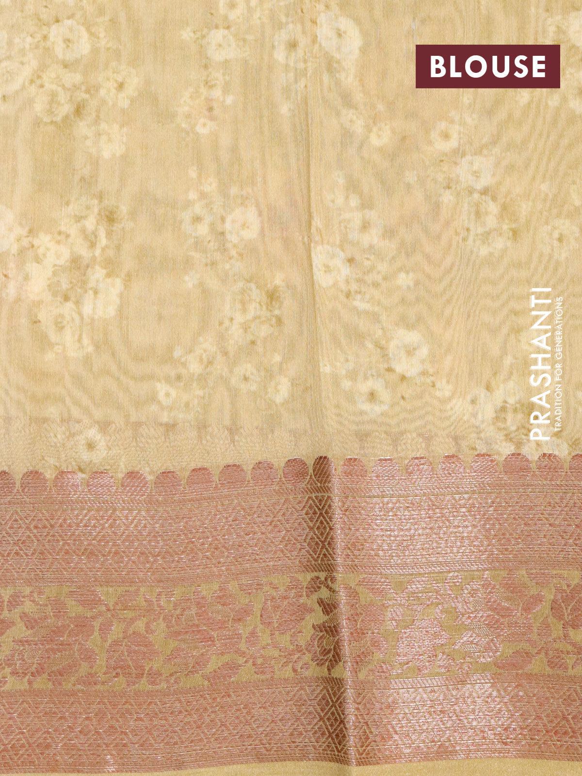 Chanderi silk cotton saree elaichi green with allover floral digital prints and woven border