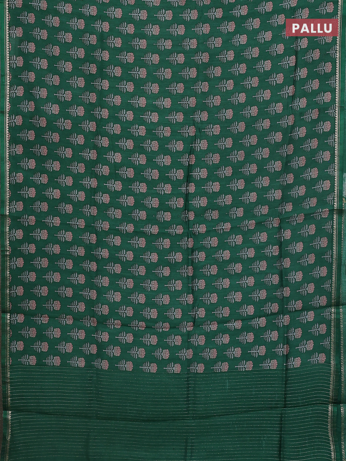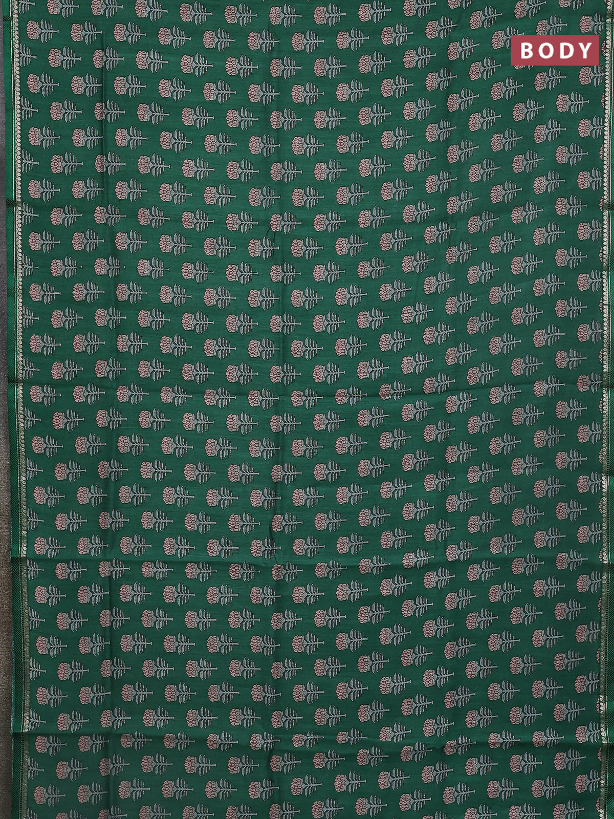 Chanderi silk cotton saree green with allover floral prints and zari woven border