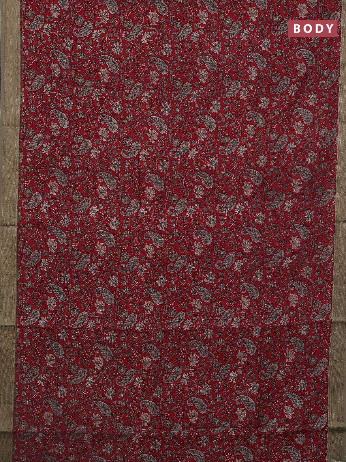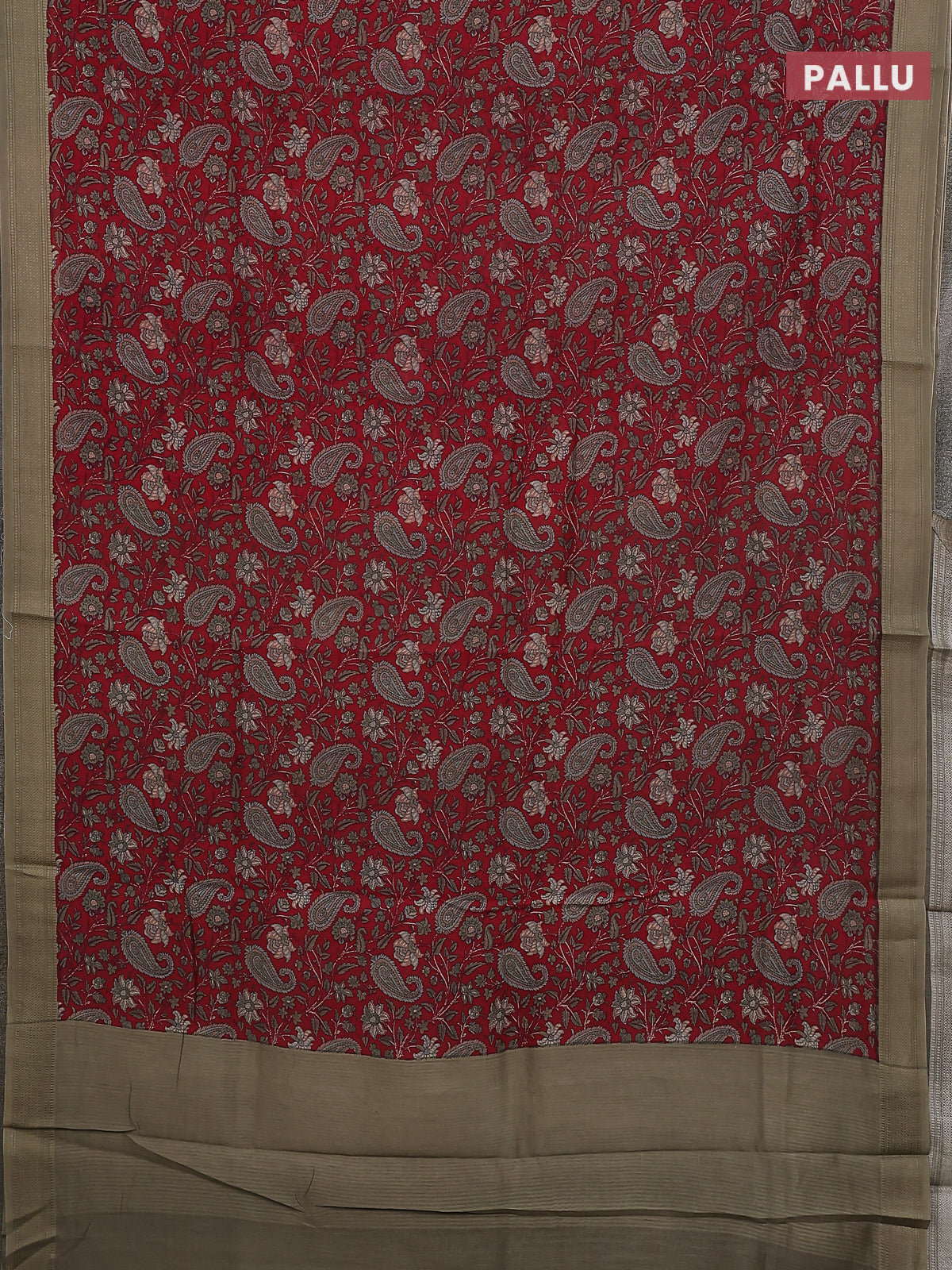 Chanderi silk cotton saree maroon and pastel green with allover paisley prints and woven border