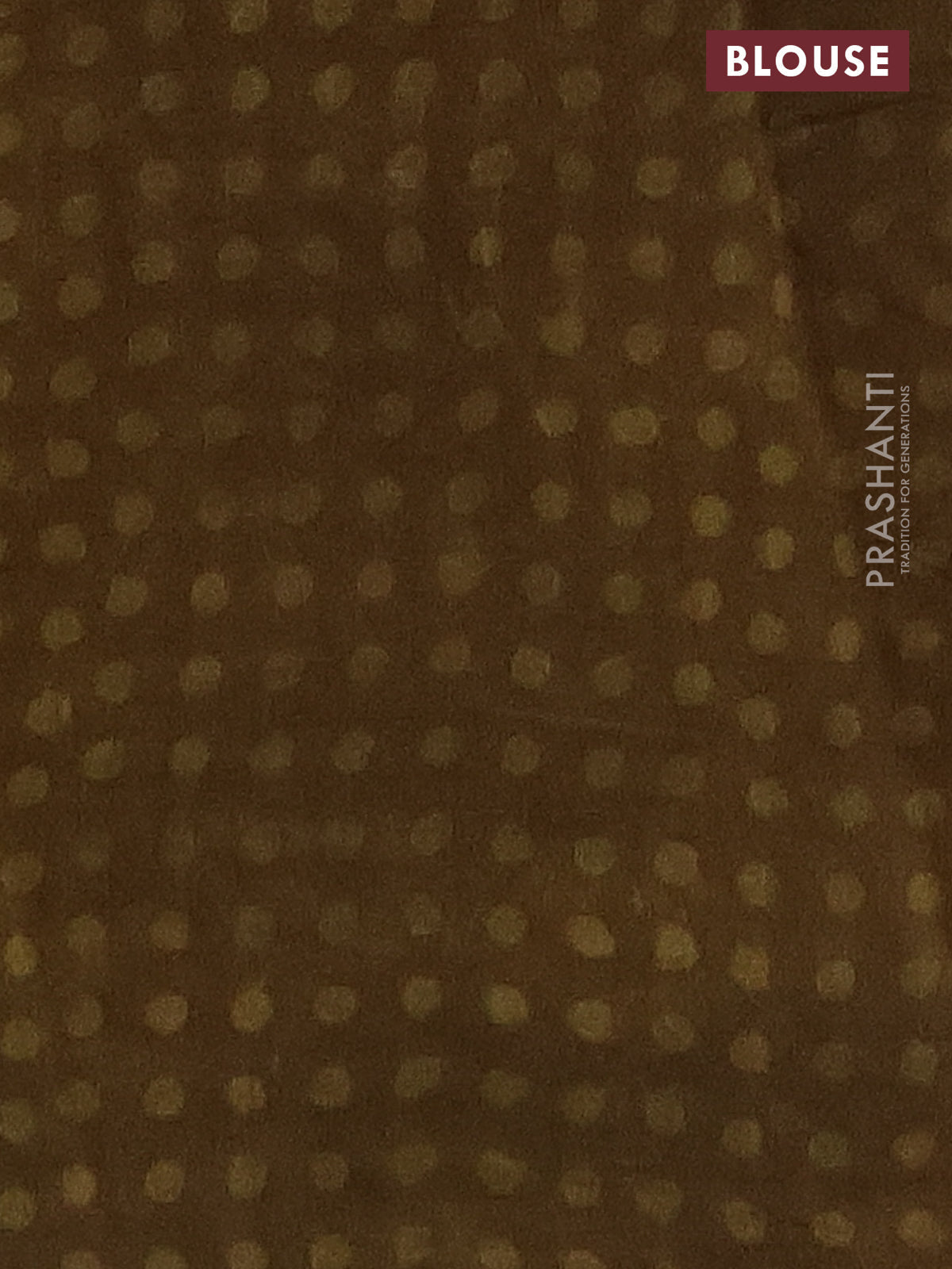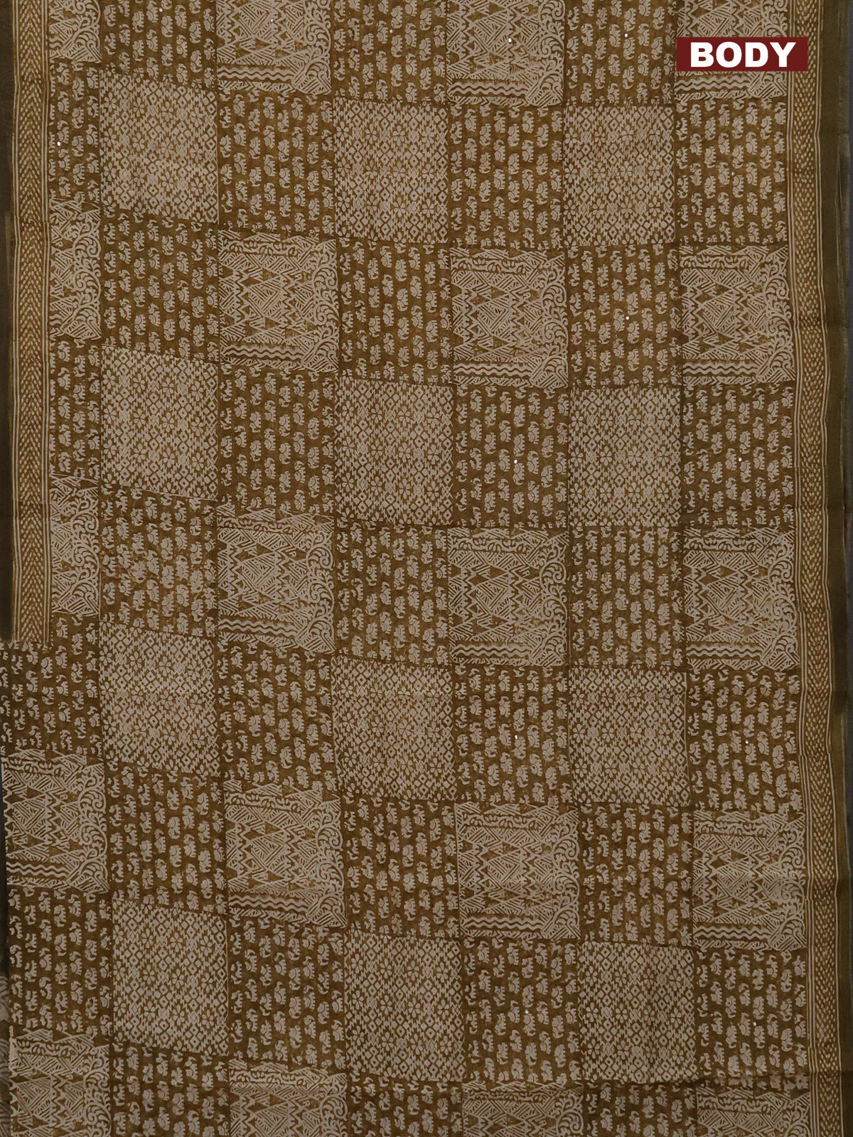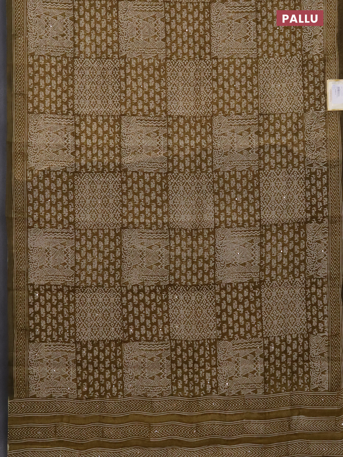 Chanderi silk cotton saree mustard green shade and beige with allover prints & mirror work and printed border