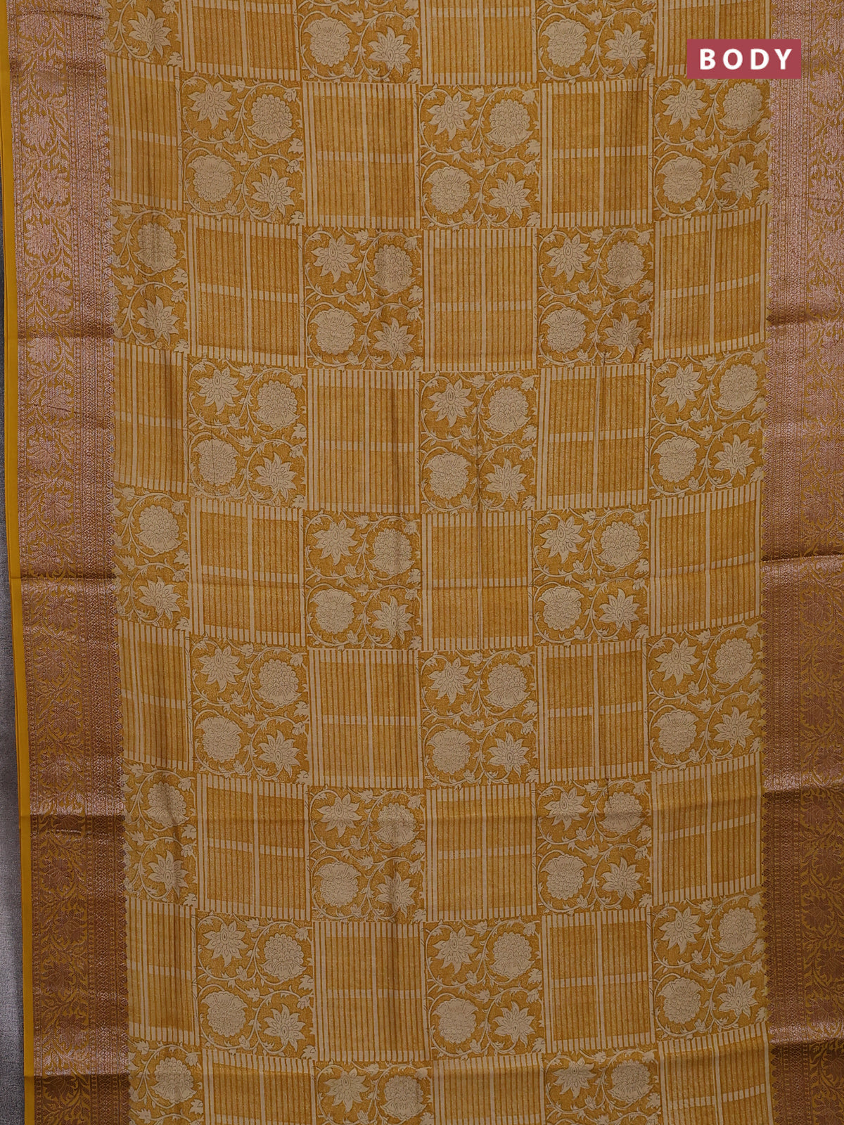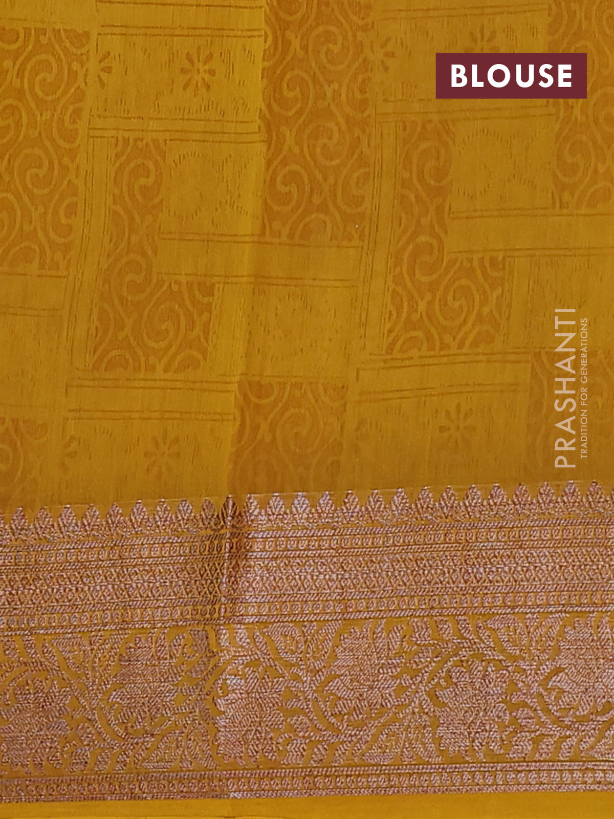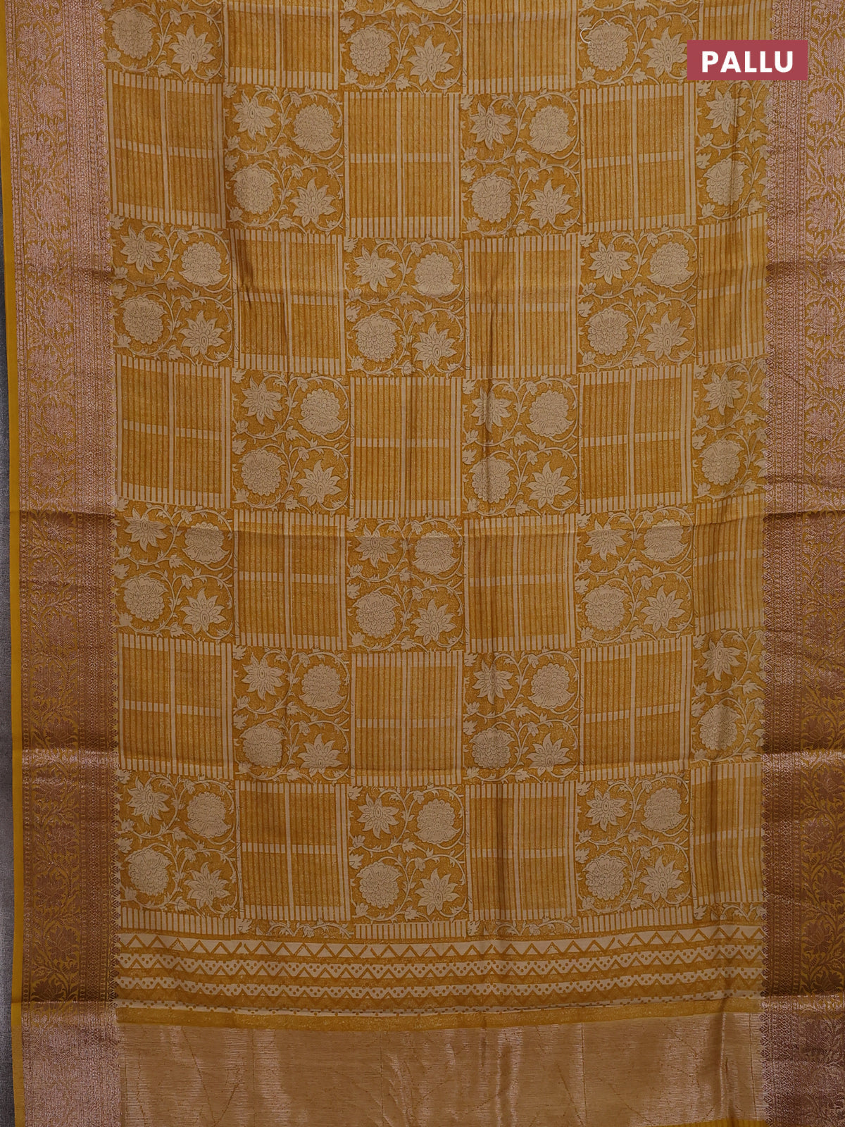 Chanderi silk cotton saree mustard yellow with allover prints and banarasi style border