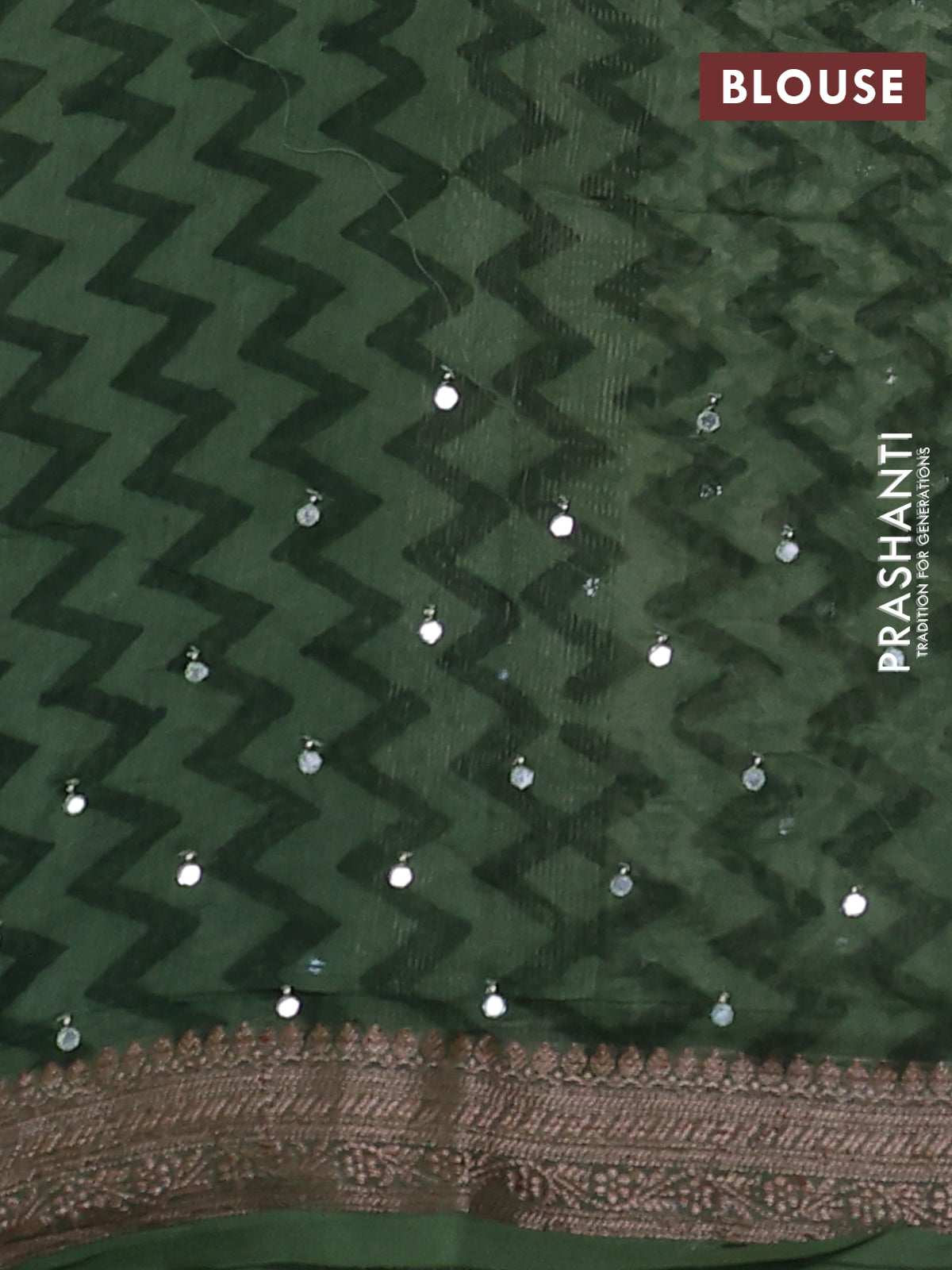 Chanderi silk cotton saree pastel green with allover prints & mirror work and woven border