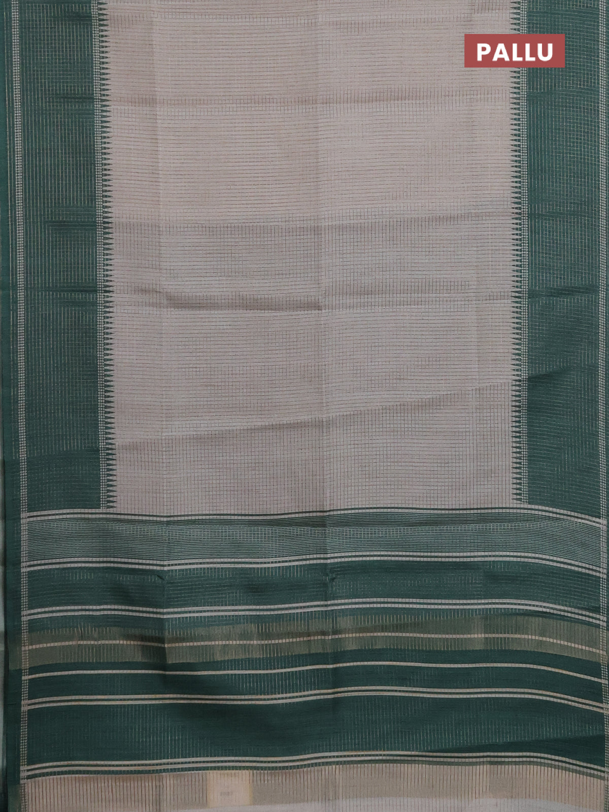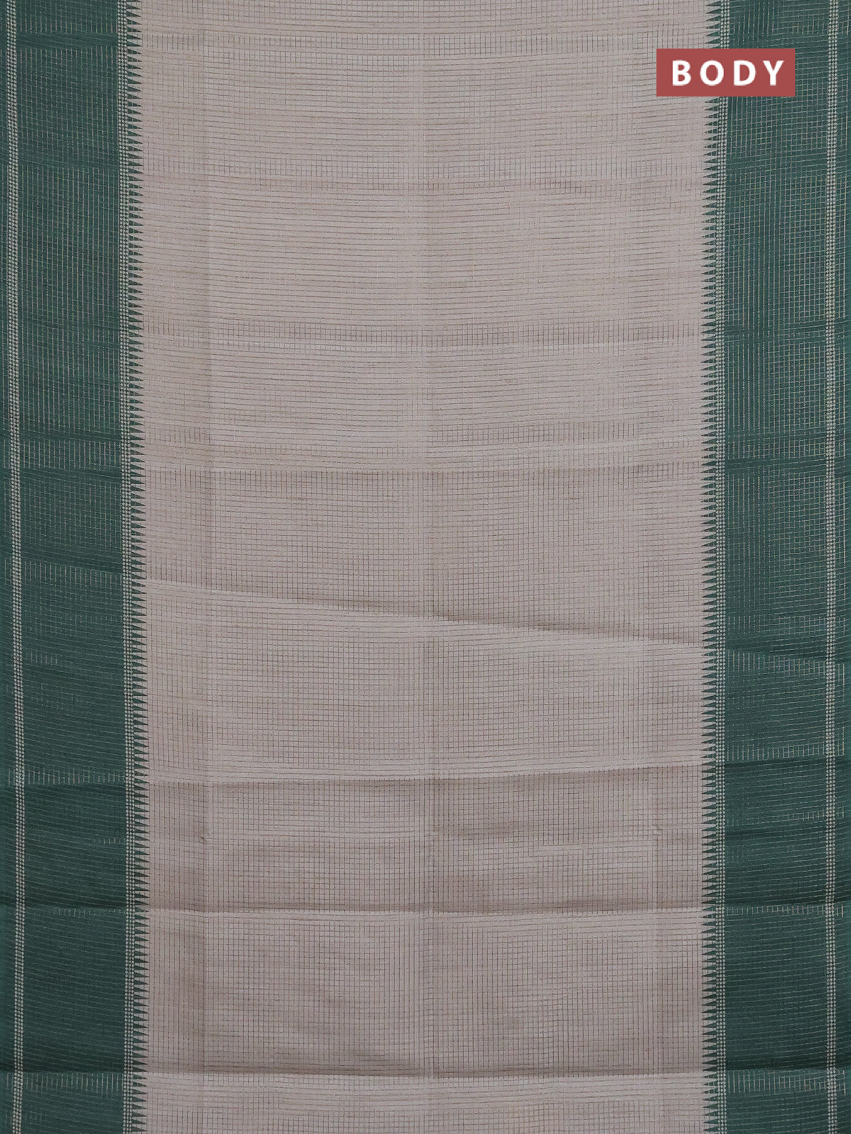 Chappa saree grey and green with allover small zari checked pattern and temple design zari woven border