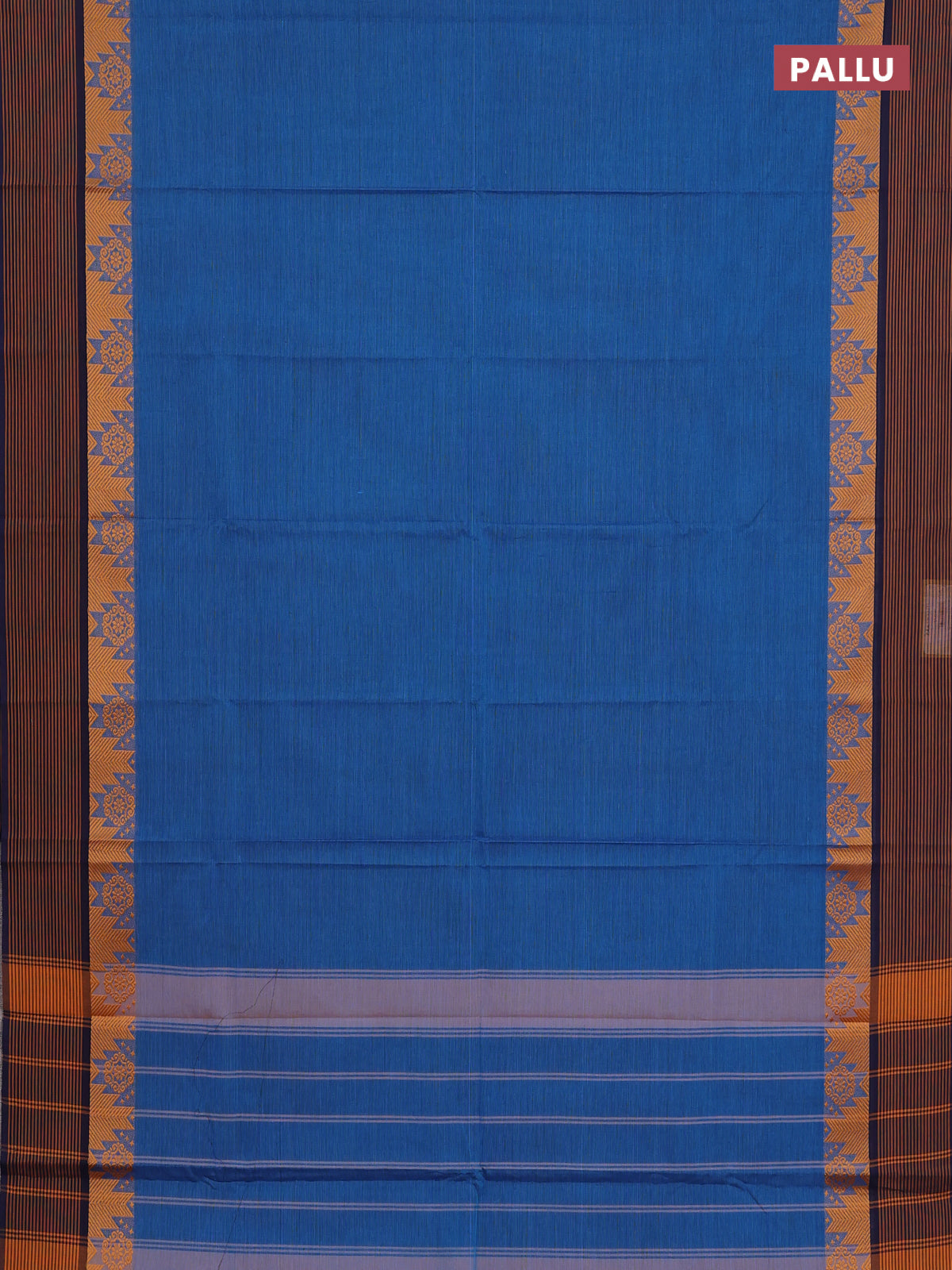 Chettinad cotton saree cs blue and navy blue with plain body anf temple design simple border