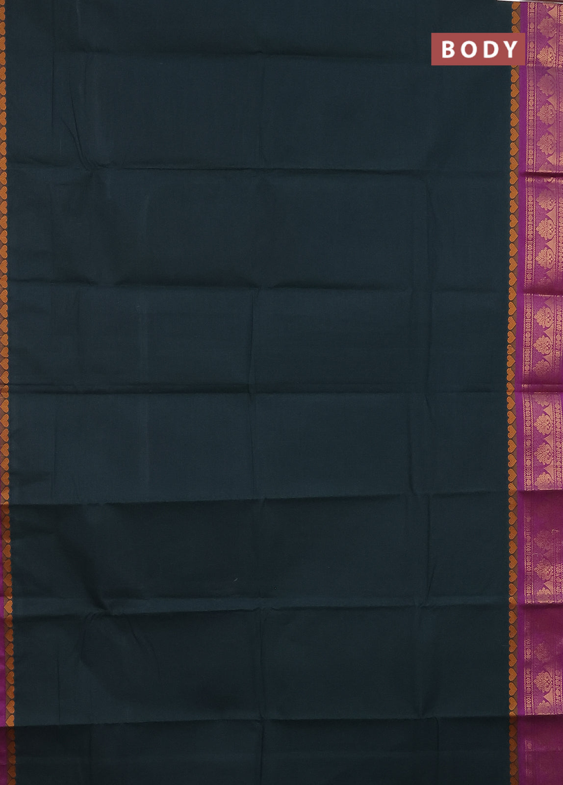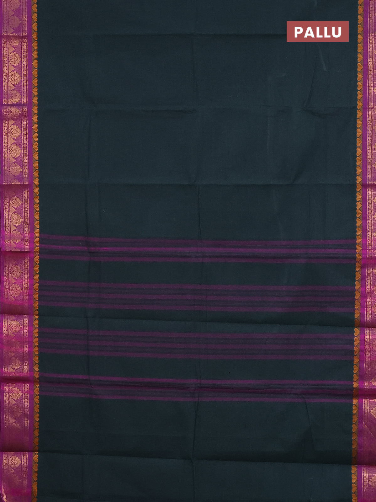 Chettinad cotton saree dark green and purple with plain body and zari woven border