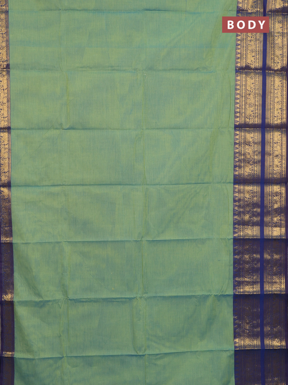 Chettinad cotton saree dual shade of green and blue with plain body and long zari woven border