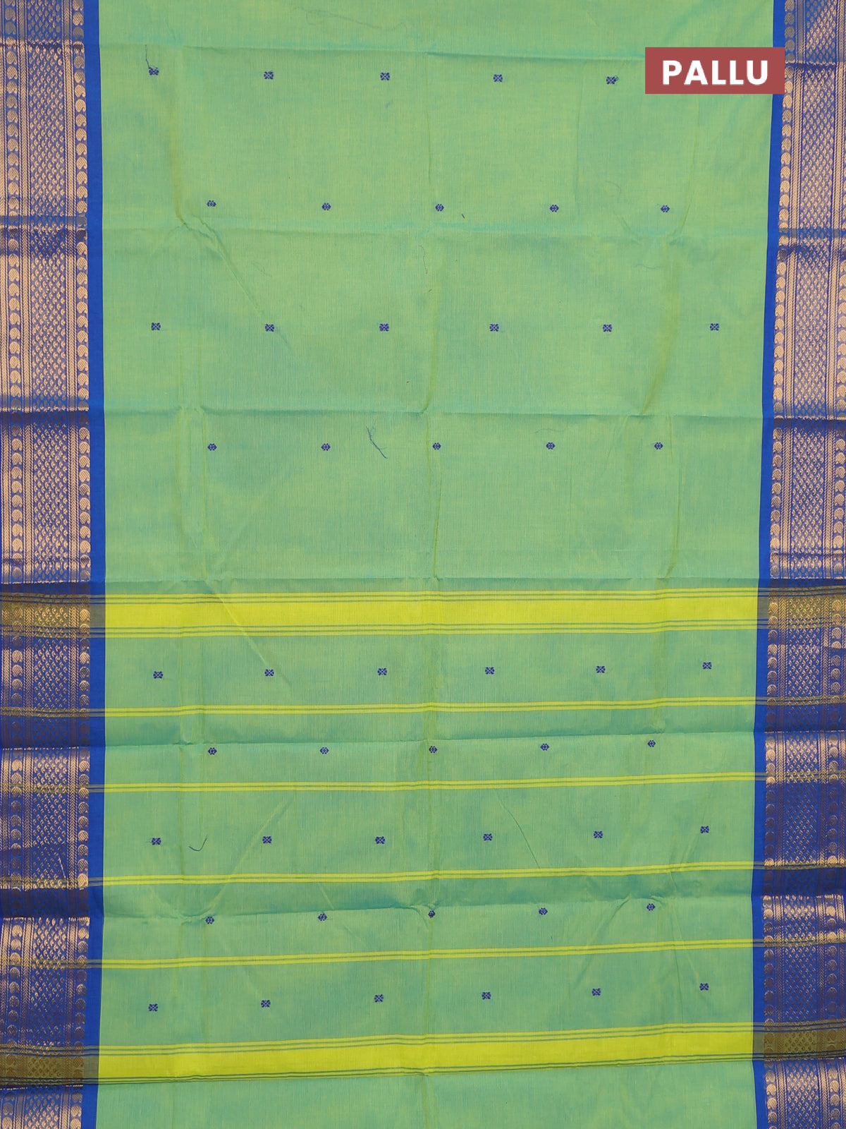 Chettinad cotton saree dual shade of light green and blue with thread woven buttas and zari woven border