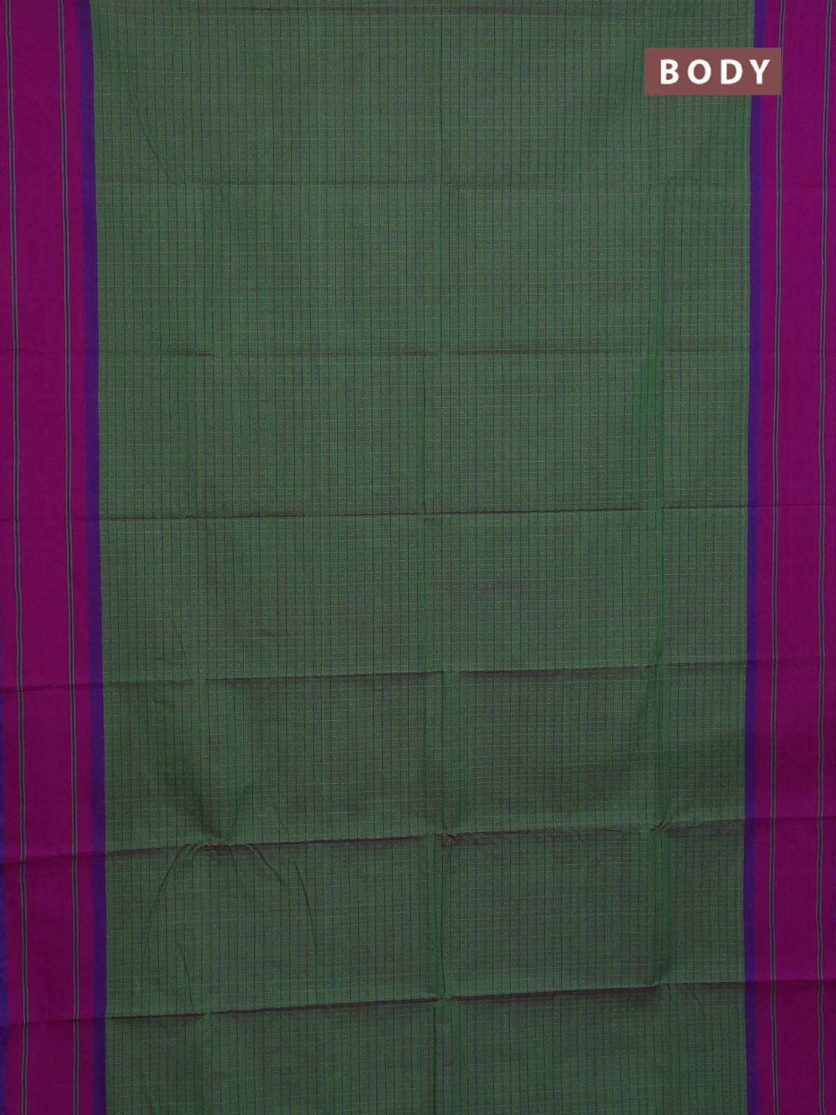 Chettinad cotton saree green and violet with allover checked pattern and simple border