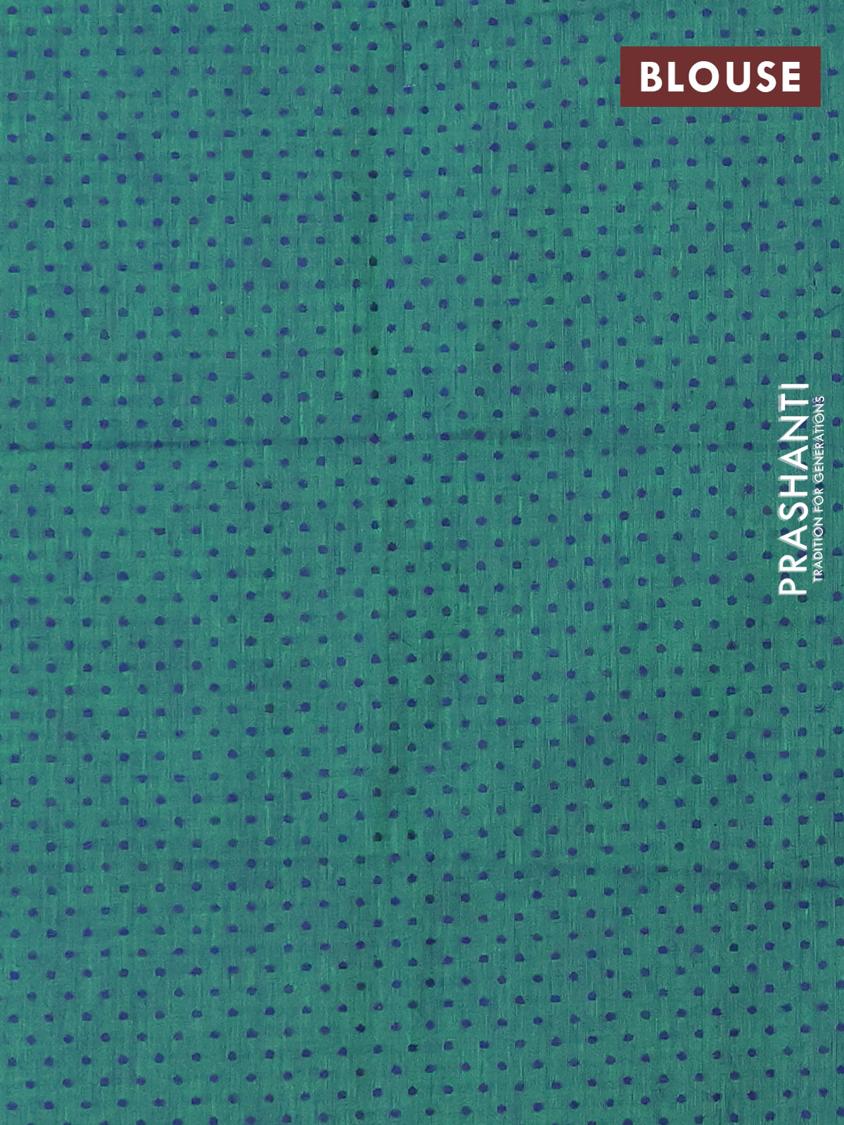 Chettinad cotton saree navy blue and green with thread woven buttas and rettapet zari checked border