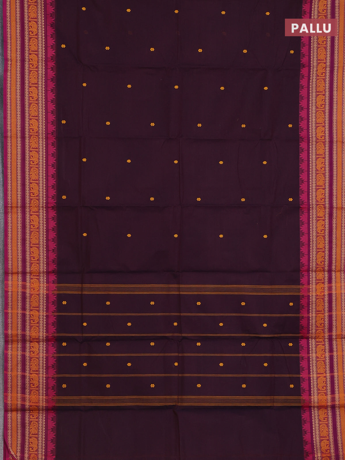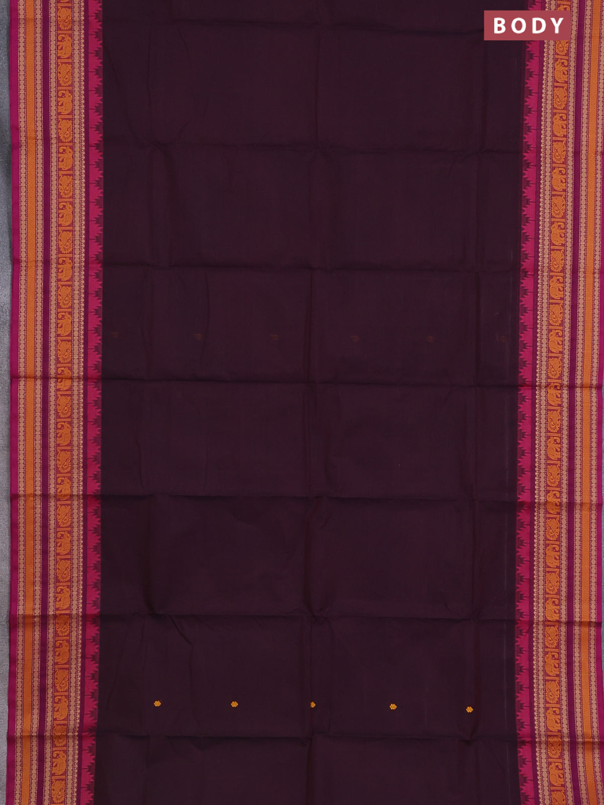 Chettinad cotton saree wine shade and dark magenta pink with thread woven buttas and thread woven border