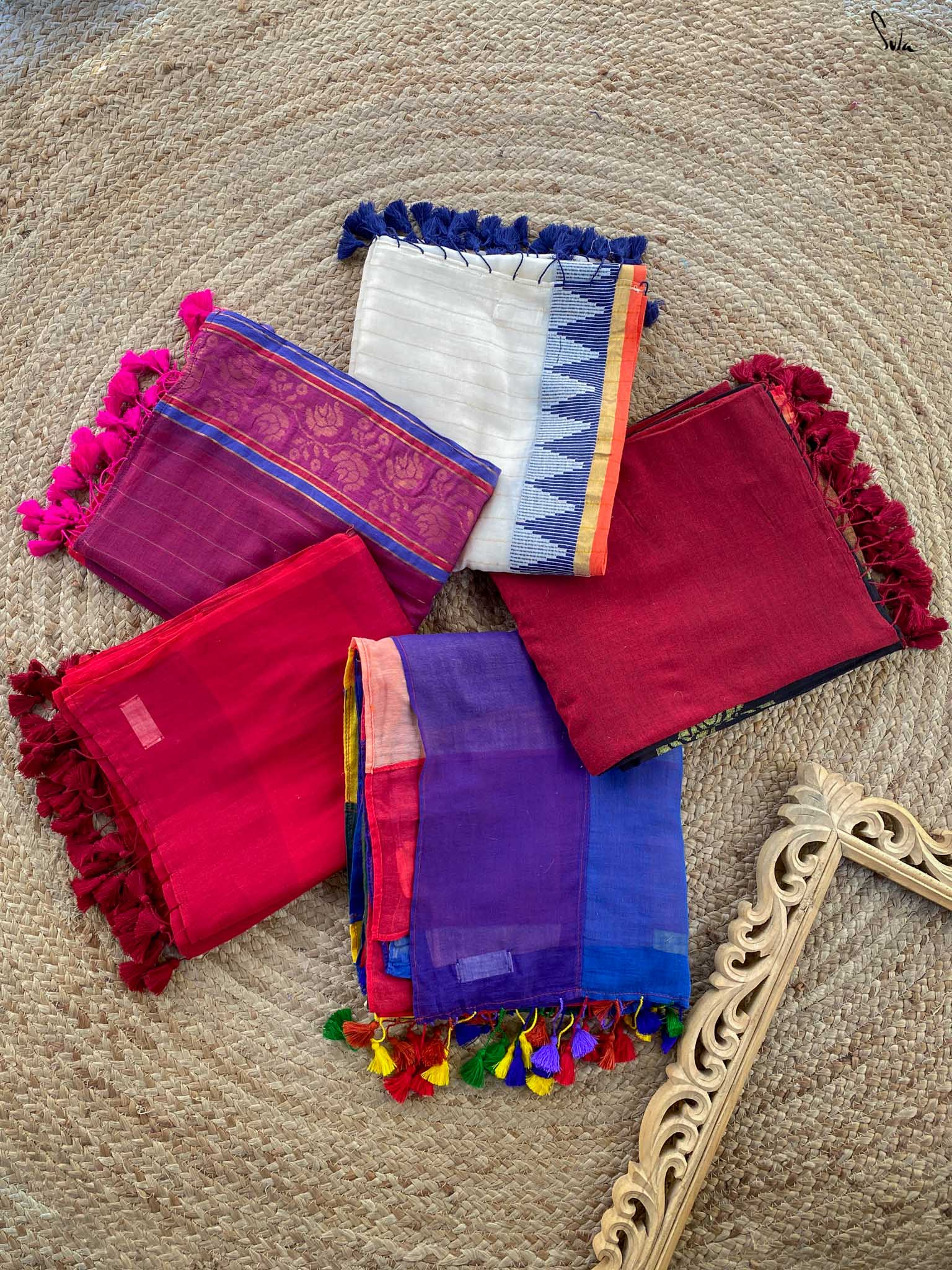 Unleash your inner diva with our vibrant "Chic Charisma" saree combo! This heartwarming collection of 5 sarees, curated from a diverse set of fabrics, is designed to bring out the playful, cheeky side of you. Each saree is a celebration of your unique charisma, with bold colors, trendy designs, and a dash of sass. Express your personality and make a statement with “Chic Charisma”.