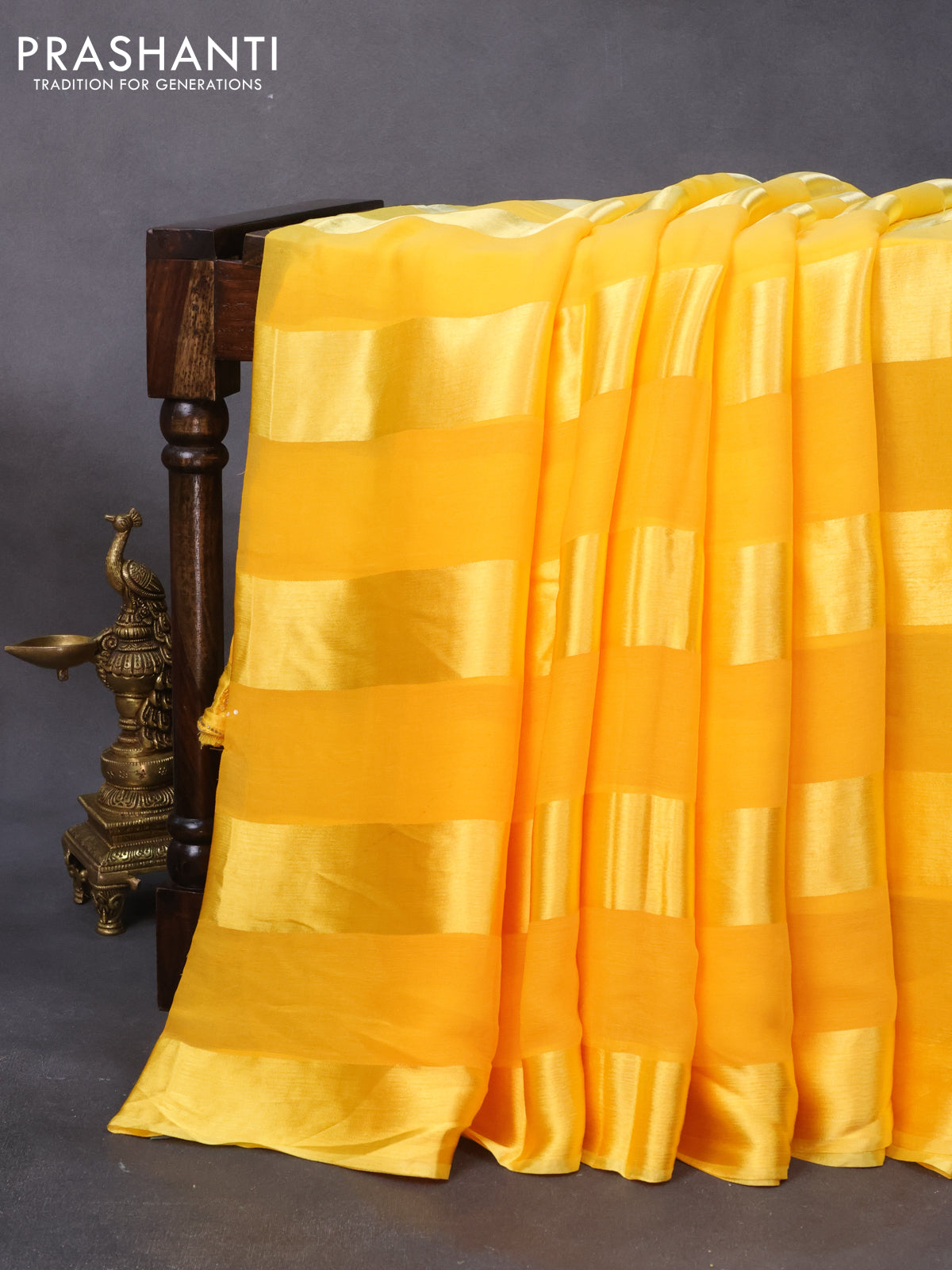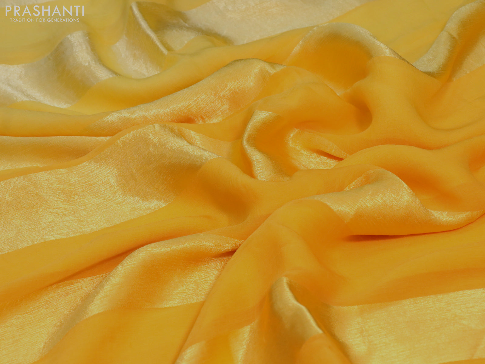 Chiffon silk saree mango yellow with satin finished in borderless style & embroidered readymade blouse